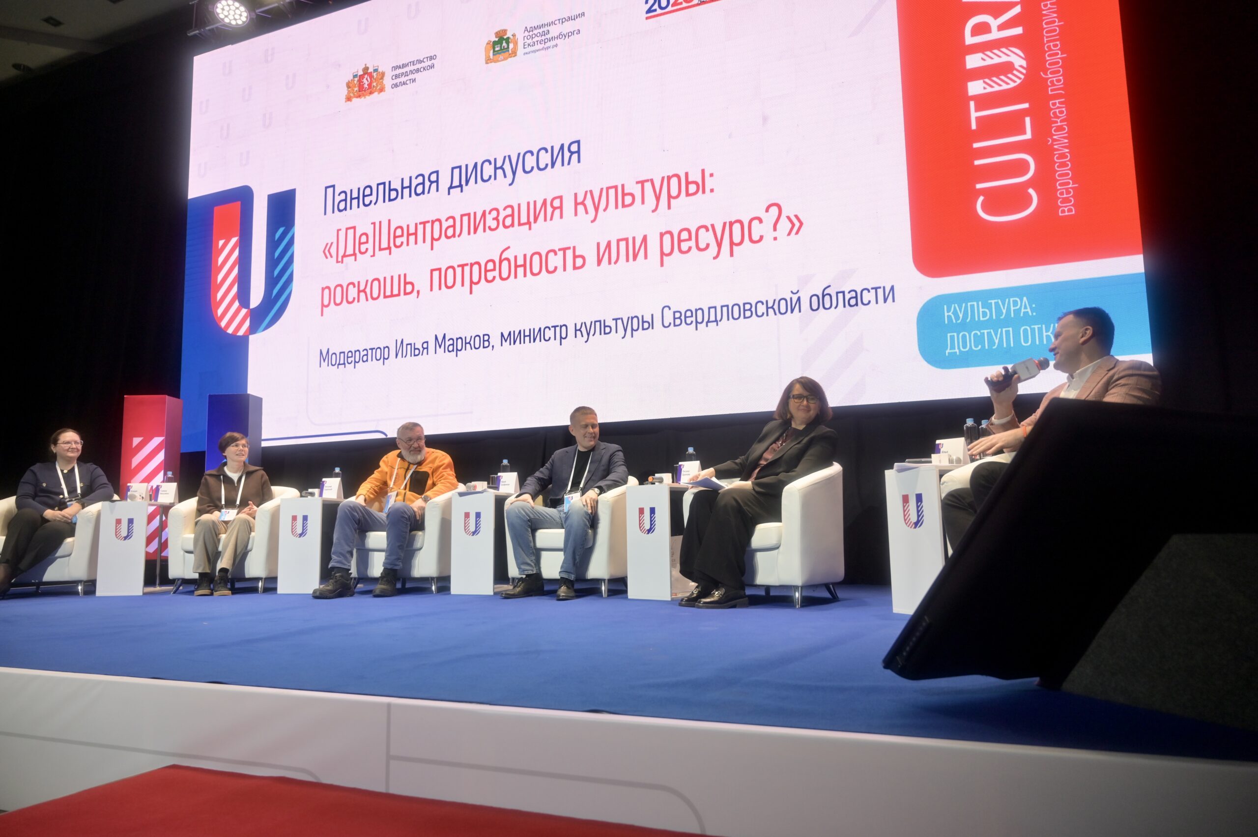 Первый день «Культуралики» задал тон дальнейшему обсуждению. Ведущие эксперты, среди которых министр культуры Омской области Юрий Трофимов (в этом году Омск объявлен культурной столицей России), генеральный директор благотворительного фонда Владимира Потанина Оксана Орачева (Москва) и руководитель центра молодежных инициатив «Остановка» Галина Никулина обсудили, насколько культура сегодня открыта для человека вне зависимости от того, где он живет. Модератором дискуссии выступил министр культуры Свердловской области Илья Марков.