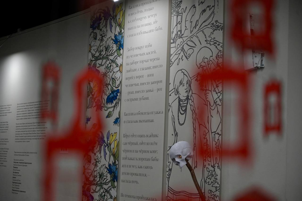 Кроме того, впечатлят зрителей и инсталляции по мотивам русских сказок. Они увидят и бочку из «Сказки о царе Салтане», и волшебный череп из «Василисы Прекрасной», который осветит гостям дорогу к другим артефактам по мотивам сказочных иллюстраций. А в зоне для чтения любой желающий сможет обратиться к текстам произведений, окунуться в богатый и колоритный язык русской сказки.