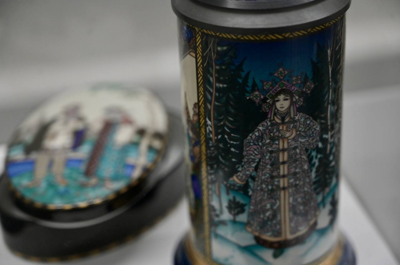 Наталья Гончарова обратилась к одной из древних техник ручной печати – пошуару, существенно обогатив жанр «книги художника». Борис Зворыкин в свою очередь стал популяризатором орнамента, органично вплетая его в книжную иллюстрацию. Кстати, в экспозиции графические работы Зворыкина впервые предстанут перед зрителями в фарфоровом обличии – росписью на тарелках, шкатулках и пивных кружках второй половины XX века.