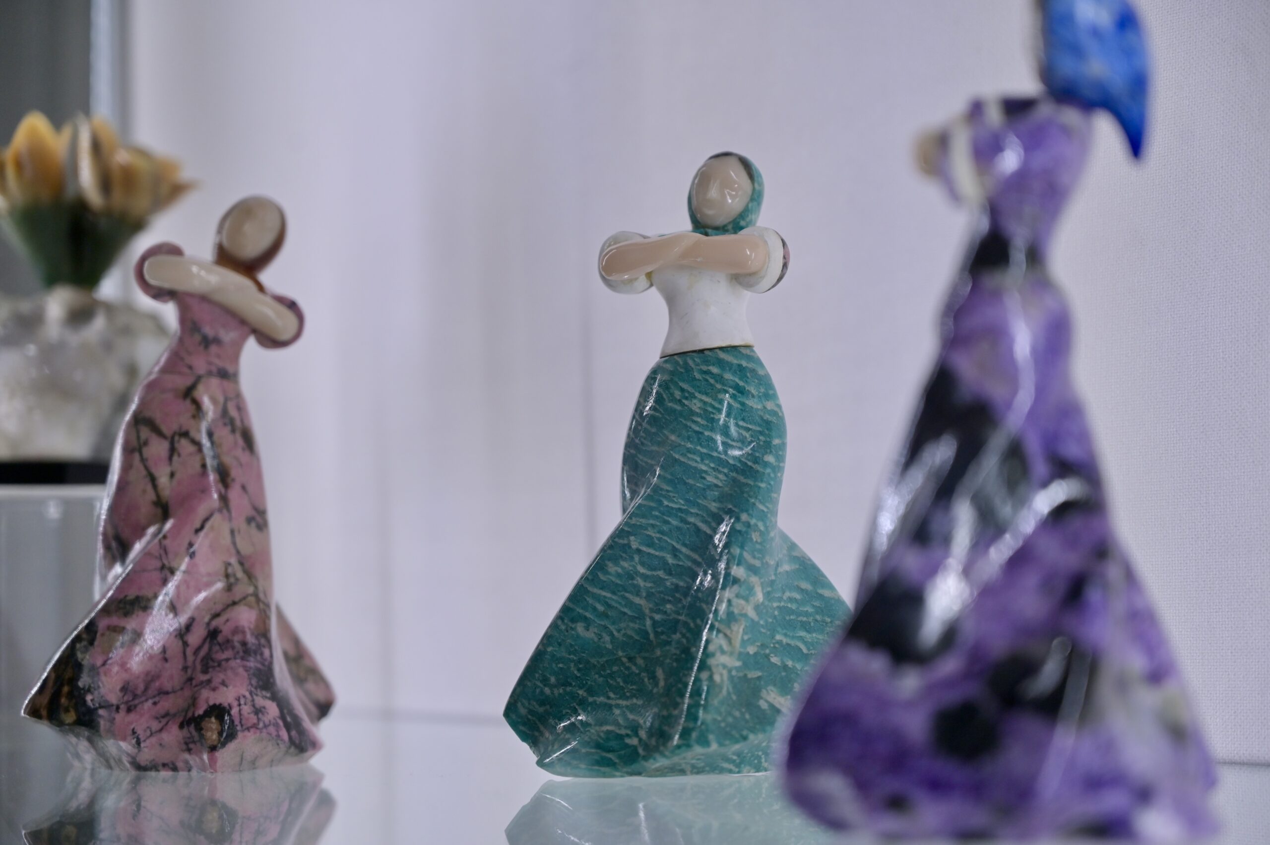 В июле на смену сибирякам придет персональная выставка Эдуарда Ахметшина – мастера, виртуозно владеющего огранкой камня. Этот автор – геолог, выпускник Московского геологоразведочного института и один из первооткрывателей Коркодинского месторождения демантоида и топазолита, расположенного к северу от Верхнего Уфалея. Эдуард Ахметшин занимается созданием оригинальной огранки самоцветов.