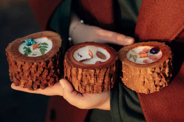 Для создания атмосферы послужат свечи необычных форм и диффузоры. Большая часть предметов на ярмарке создана из натуральных материалов: игрушки из ваты и из дерева, валяные изделия, декор из лозы.