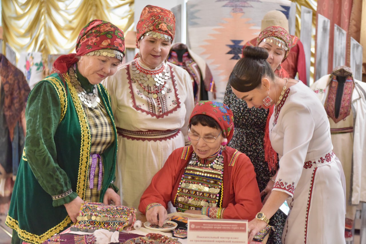На марийском подворье гостей учили расшивать платок – один из основных элементов традиционного марийского костюма.