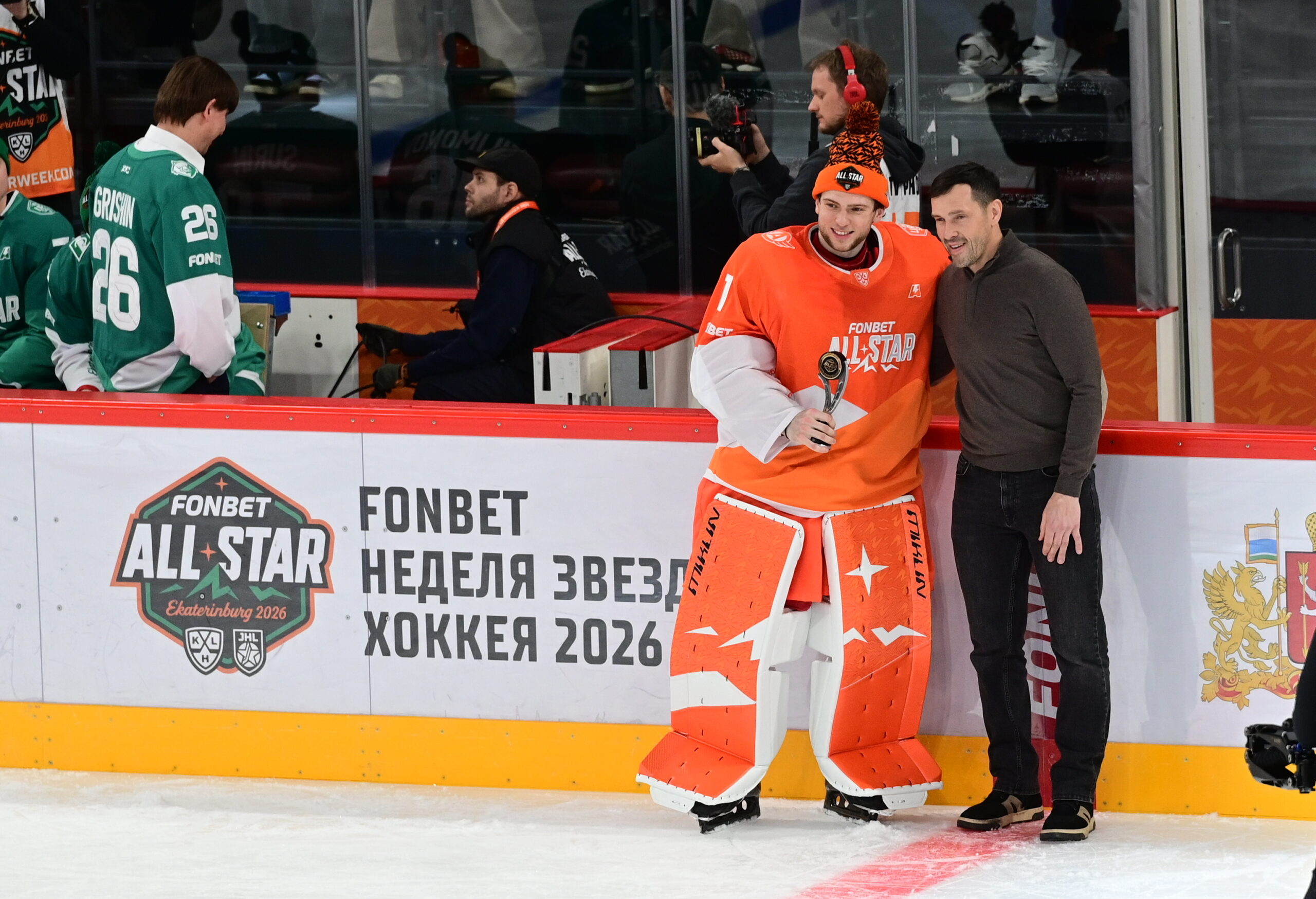«На тренировках – кто меня знает – эмоции захлестывают побольше. Здесь праздник, позитив. Тренировка – это процесс, где ты работаешь, там не так много позитива. Это разные вещи. Конкурс вратарей – самый запоминающийся момент Матча звезд КХЛ. Не ожидал, что получится выиграть, еще и с таким отрывом. Не тренировался – иногда на тренировках выходишь, бросаешь, валяешь дурака. Но должен был щелчок сделать сильно, постарался, поэтому и упал. Домашний Матч звезд? Немного ответственность чувствуется – несмотря на то, что многие моменты здесь происходят несерьезно, хочется сиять», – отметил триумфатор конкурса вратарей Владимир Галкин.