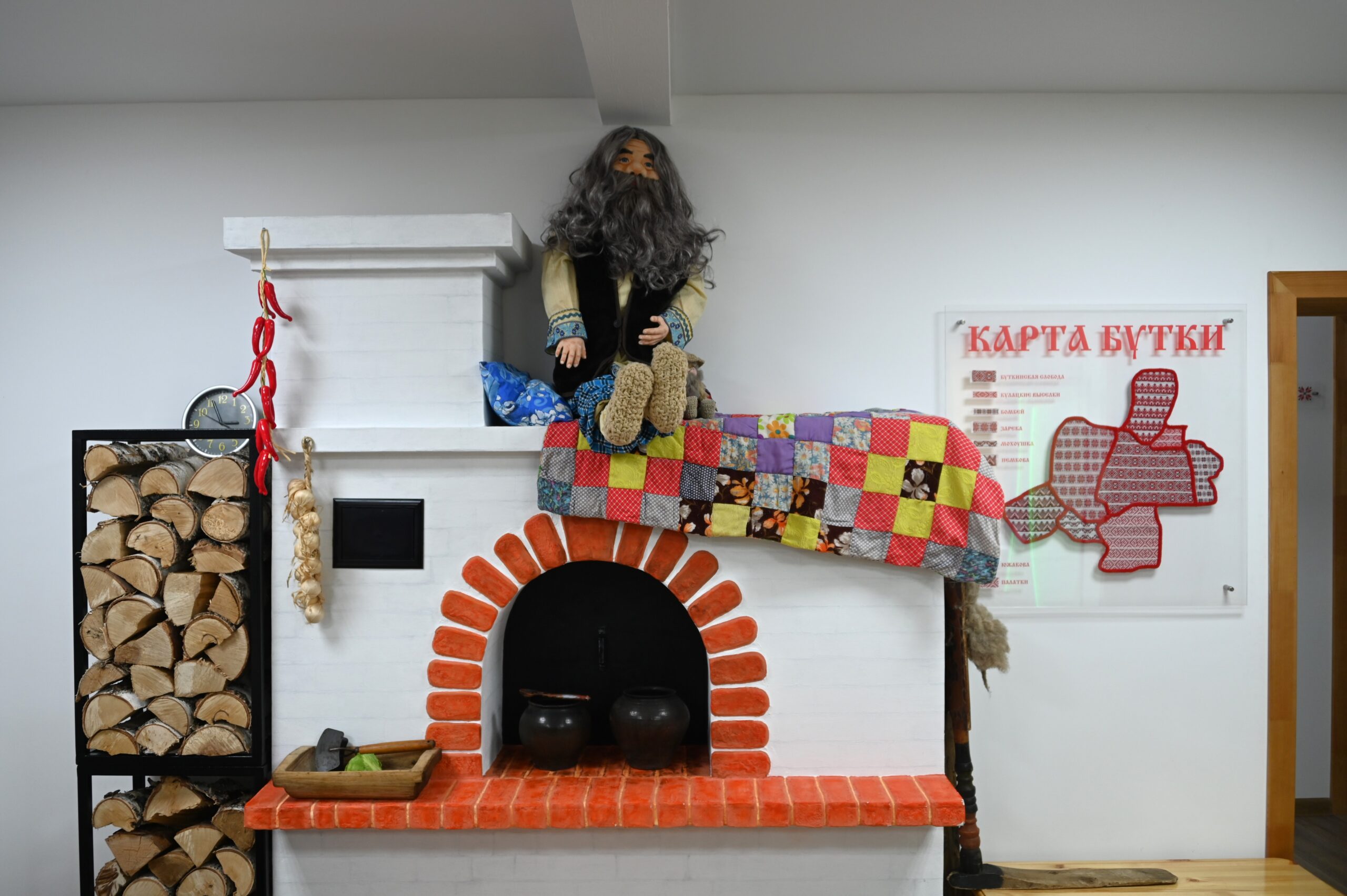 Модельная библиотека в селе Бутка открыла двери после модернизации несколько недель назад. Это этнобиблиотека. Гостей здесь встречает домовой, сидящий на печи. Попав в нее, ты будто оказываешься в русской избе.
