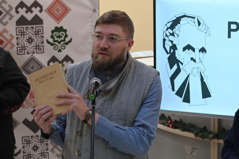 Конечно же, в день рождения Бажова звучали фрагменты его сказов – на русском и других языках народов Урала. Конечно же, Межнациональная библиотека не могла не представить свои раритеты – издания бажовских сказов на английском, башкирском, киргизском, казахском (а тот же Александр Савичев похвастался, что у него есть сказы на японском, финском: «Теперь охочусь за изданием на китайском»). Заодно возник разговор о созвучии некоторых бажовских образов с образами из мифологии тех народов, что живут на Урале. Открытием для многих стала «поэтическая грань» наследия Бажова: правнук писателя Алексей Бажов прочел стихотворение, которое Павел Петрович написал – посвятил своей будущей жене перед их свадьбой. Большинство услышали его впервые.