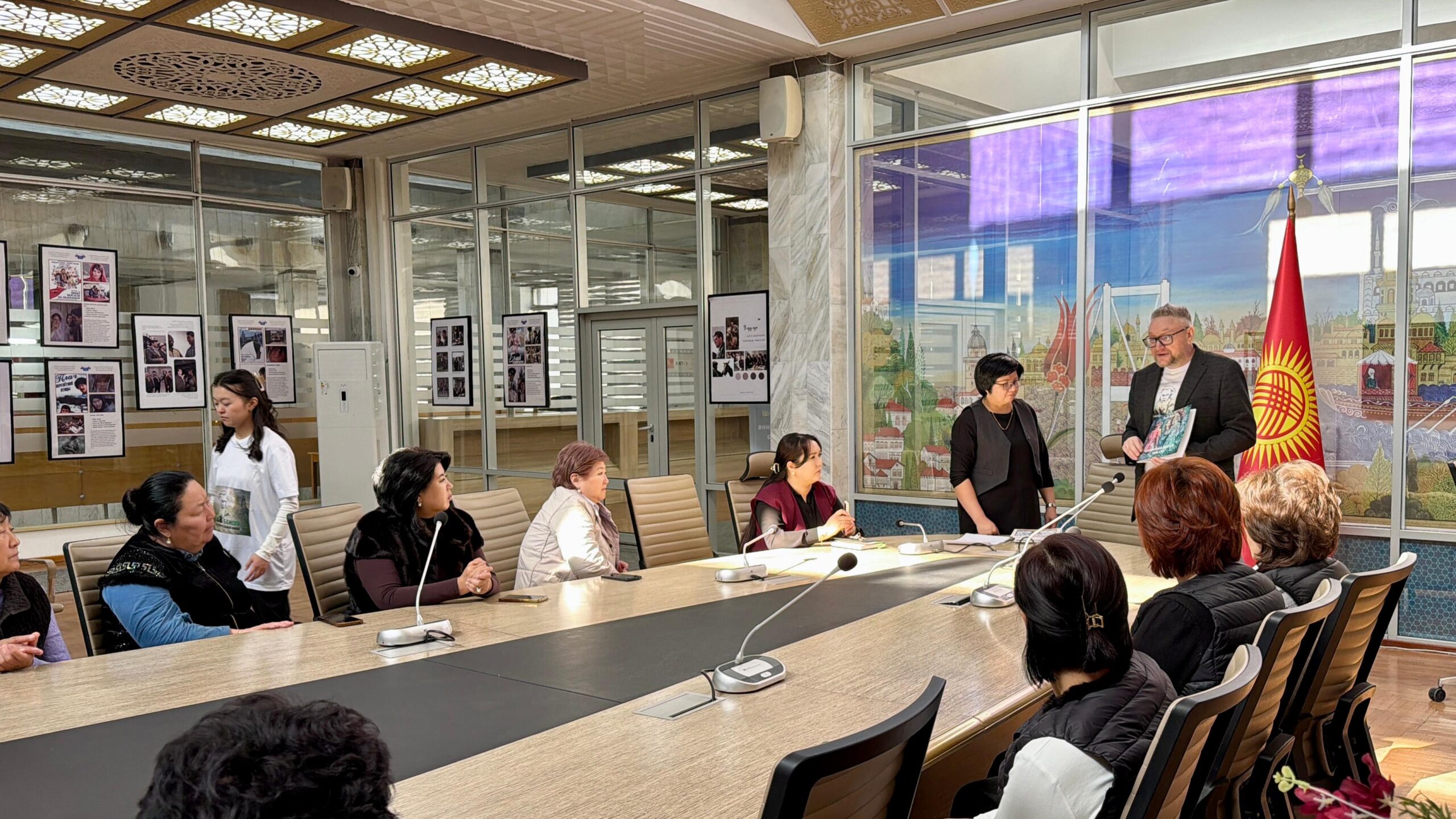 Следующая творческая встреча прошла в Национальной библиотеке Кыргызской Республики. Ее участники посмотрели и обсудили с создателями фильм «Золотой полоз». Кроме того, Фонд «Бажов» передал в дар библиотеке 10 книг, изданных организацией.