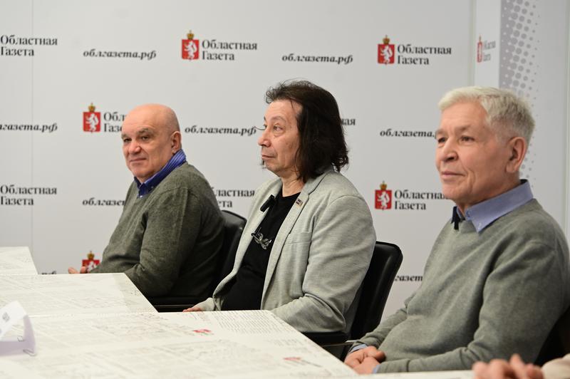 В редакции «Областной газеты» состоялась встреча, посвященная завершению съемок музыкального фильма «Когда поют», являющегося частью проекта «Песня о Родине» к 100-летию легендарного композитора Евгения РОДЫГИНА. Гостями стали члены команды студии «Мастер»: режиссер Андрей КИМ, продюсер Александр ЛЕКЕР, а также сын композитора Евгения Родыгина – Роман РОДЫГИН, выступивший в фильме в качестве актера.