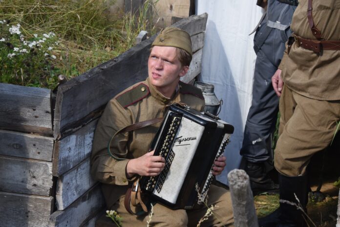 Ким: – Первое появление музыки «в кадре» – на застолье. Совершенная классика быта: вечером люди собрались и поют под баян. Как пели наши родители, бабушки-дедушки. И в финале, в последнем эпизоде, звучит баян. Это, образно говоря, рамка. А внутри, в середине – целый ряд удивительных аранжировок песен Родыгина, которые сделал прекрасный композитор Вячеслав Евдокимов из Казани.