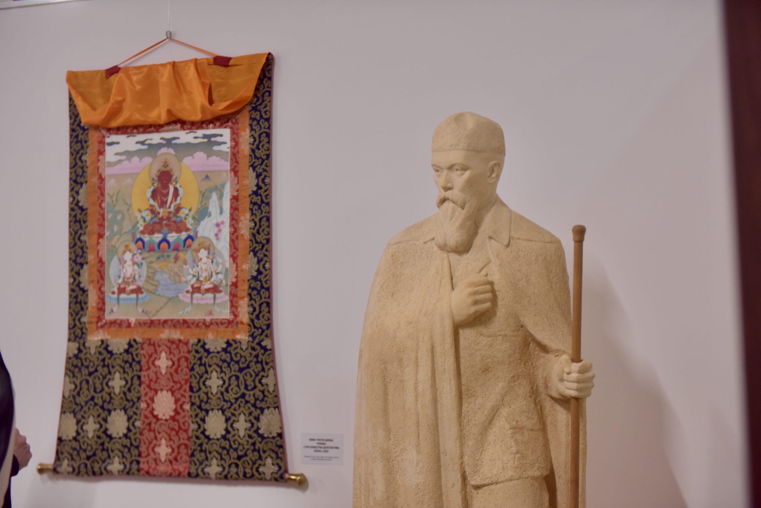 В трех залах масштабной выставки, приуроченной к 90-летию Пакта Рериха и 100-летию Центрально-Азиатской экспедиции, — около 200 экспонатов из собрания Международного центра Рерихов (Москва). Живопись. Скульптура. Личные вещи. Будь то знаменитое огненное полотно «Гессер-хан» или патефон, сопровождавший Рерихов в экспедиции, каждый экспонат — отдельный роман. Но это — для пытливого. Именно к ним обращался когда-то Николай Рерих: «Не говори: «Не знаю», но скажи: «Еще не успел узнать».