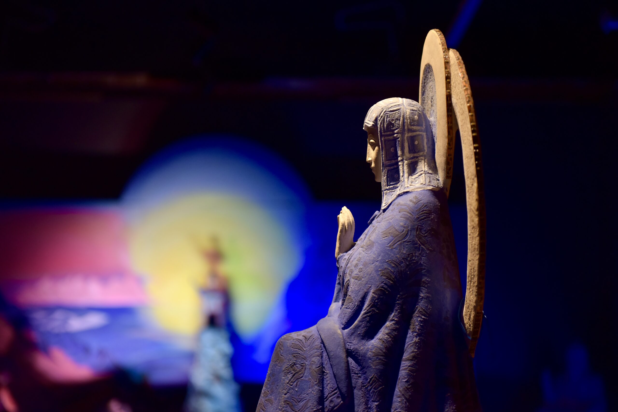 Уже от себя — предложение: загляните в Википедию «к Рериху». В строке «род деятельности» у него — 19 (!) профессий: от философа, историка, археолога до… поэта и сценографа. Он знал многих представителей Серебряного века, создал очерки о них. Балет «Весна священная» появился в Дягилевских сезонах с его подачи и по его эскизам. Разве не любопытно?! Второй зал выставки представляет образ Заповедной страны, легендарной Шамбалы — по Рериху. Центральную часть, на фоне картин художника, занимают «Вестники космической эволюции» — скульптурные изображения людей, которые творили и творят духовную историю планеты. Здесь Блок, Эйнштейн, Уланова… Титаны духа.