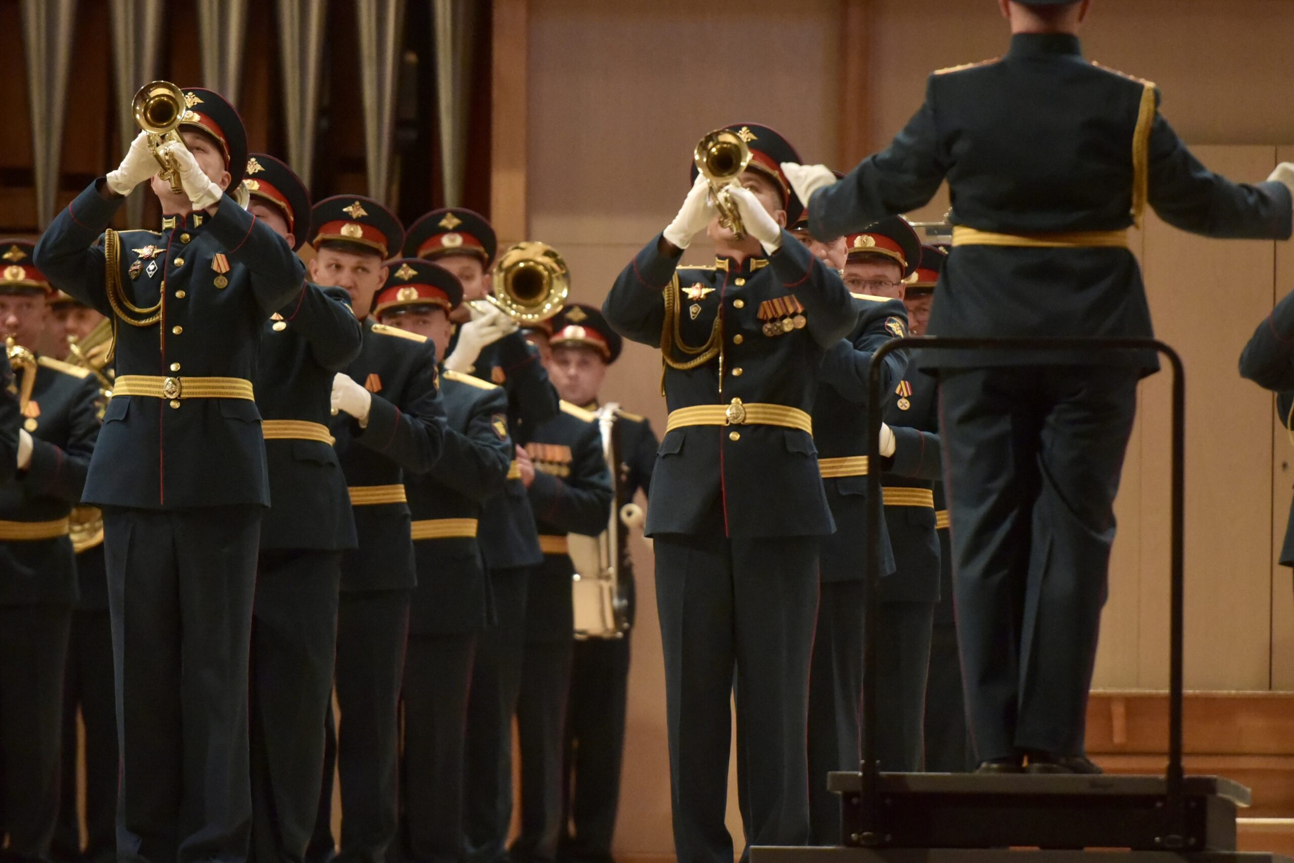 В Свердловской государственной академической филармонии прошел концерт 25-го военного оркестра штаба Центрального военного округа Министерства обороны РФ. Среди слушателей были ветераны СВО, волонтеры, представители этнокультурных и межнациональных общественных объединений, сообщили «ОГ» в Департаменте информационной политики Свердловской области.