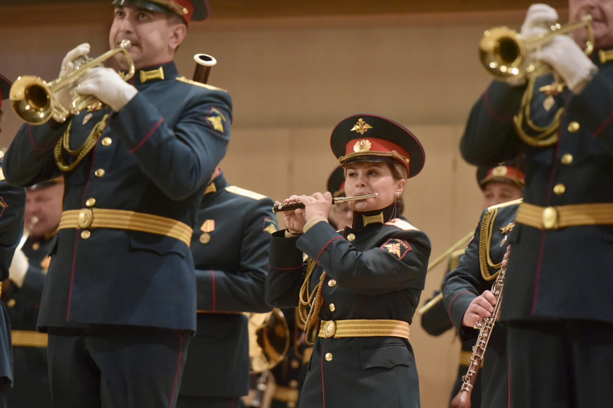В Свердловской государственной академической филармонии прошел концерт 25-го военного оркестра штаба Центрального военного округа Министерства обороны РФ. Среди слушателей были ветераны СВО, волонтеры, представители этнокультурных и межнациональных общественных объединений, сообщили «ОГ» в Департаменте информационной политики Свердловской области.