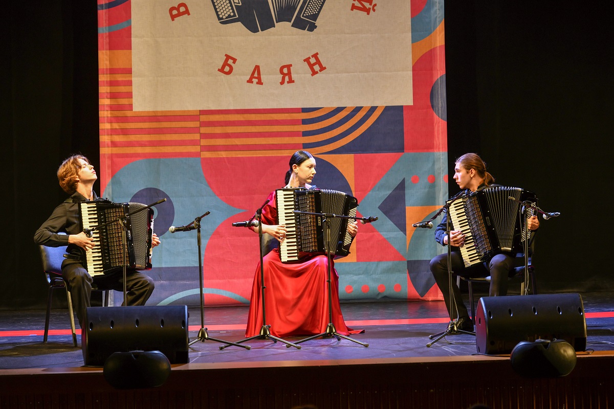 Если на первом баянном фестивале, в прошлом году, было около 30 участников, то нынче — почти 50. Все события фестиваля, конечно же, во славу баяна: он — профилирующий инструмент в любом народном оркестре. Кроме концертов отдельных исполнителей, гала-концерта, где свое мастерство продемонстрировали молодые артисты и виртуозы-исполнители из Москвы, Нижнего Новгорода, Магнитогорска и Екатеринбурга, были и мастер-классы и даже подкаст «Линия жизни», в котором чемпион мира по баянному искусству, лауреат международных конкурсов Олжас Нурланов (баян, Москва) и обладатель Премии Президента России и молодежной премии «Триумф» Никита Власов (аккордеон, Москва) вели разговор о своей «линии жизни», а еще — о достоинствах и перспективах любимого инструмента.