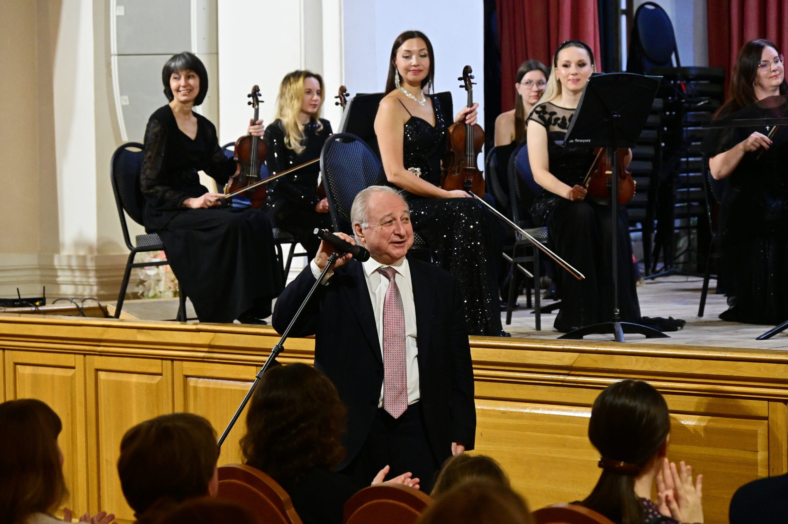 Высокие и искренние слова признания заслуг Почетного гражданина Свердловской области заслуженного артиста России Вольфа Усминского прозвучали от его коллеги и друга – декана оркестрового факультета Московской консерватории, профессора, народного артиста России Владимира Иванова: