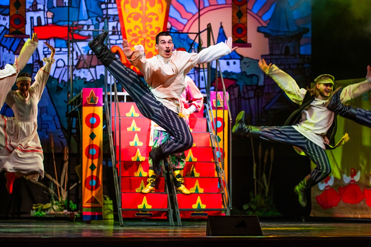 Отдельный персонаж спектакля — хореография. Яркие танцевальные номера — не просто вставное украшение этого мюзикла. Главный хореограф Детской филармонии Игорь Ходаковский делает хореографию частью действия. Артисты балета в этом спектакле — и народ, вечно занятый каким-то делом, и болотные жители, и охрана Кощея, и даже… ножки Избушки в дремучем лесу. Даже ножки сказочной избушки умеют танцевать!