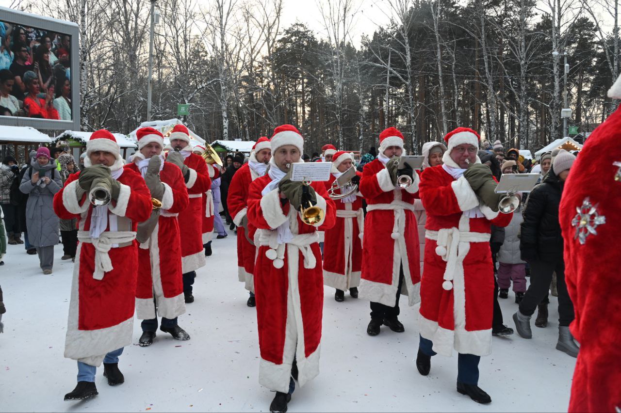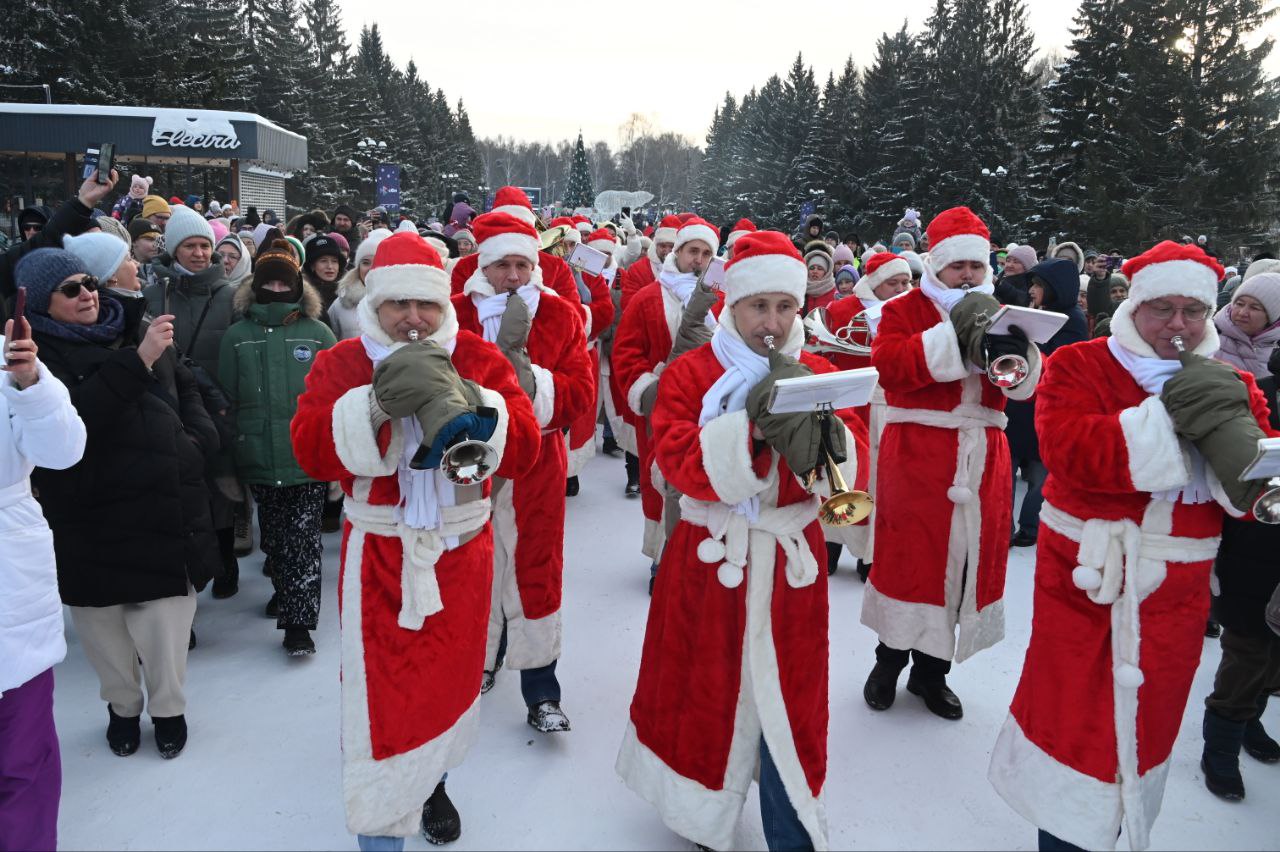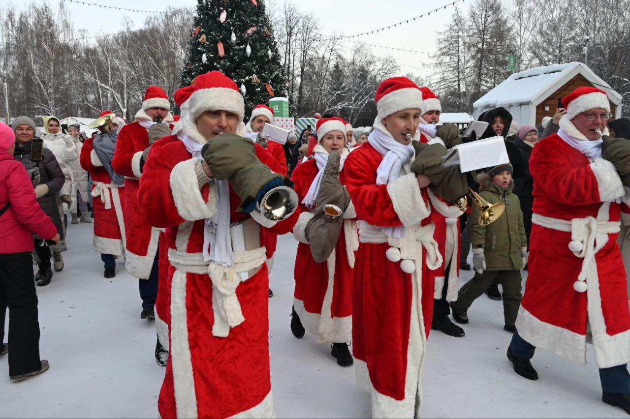 В Екатеринбурге в парке Маяковского масштабно прошел парад Дедов Морозов. Участники духового оркестра «Уралбэнд» под руководством Александра Павлова по традиции прогулялись по парку в костюмах зимних волшебников. Затем они вышли на главную сцену, чтобы исполнить знакомые всем добрые песни.