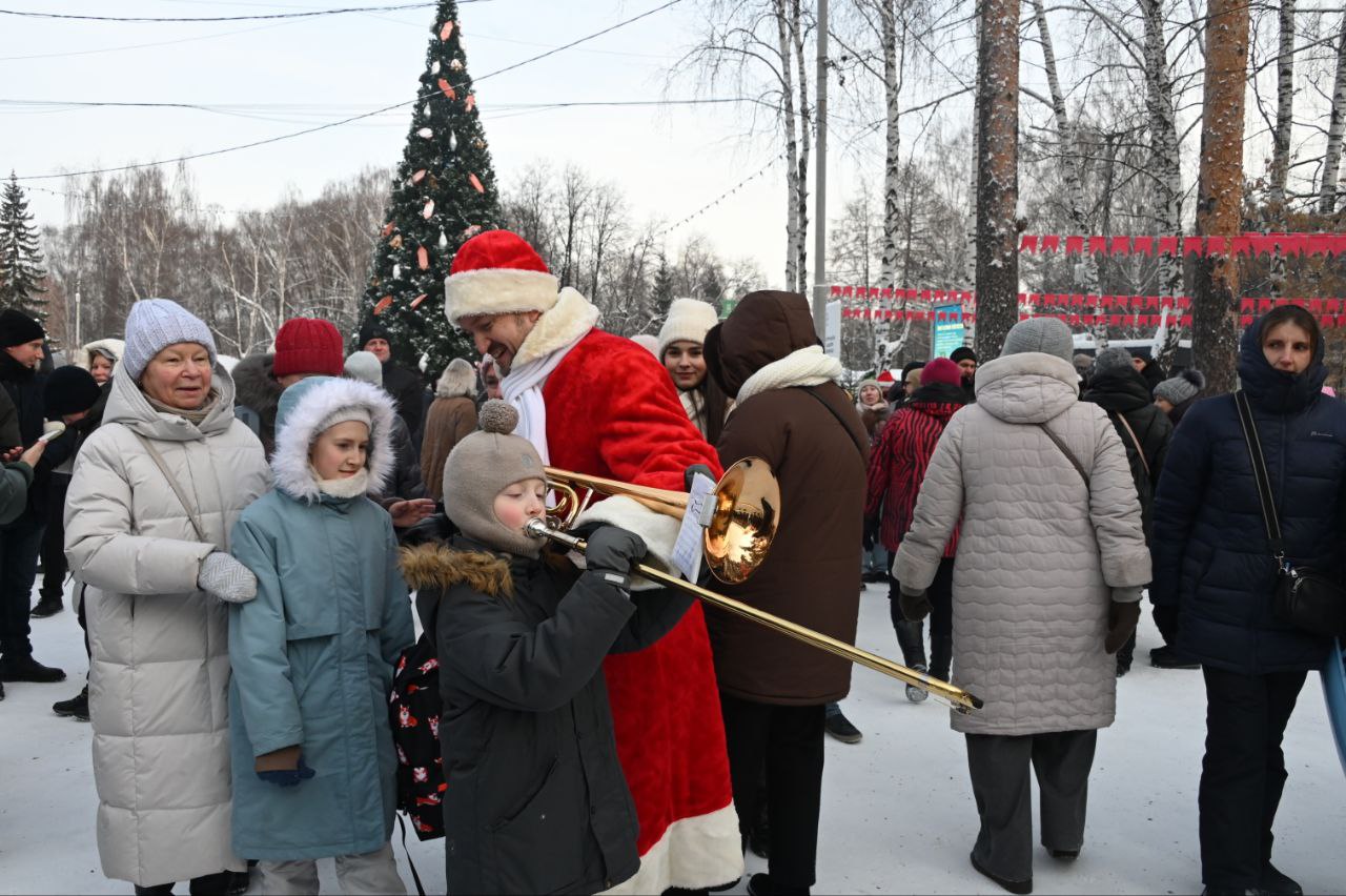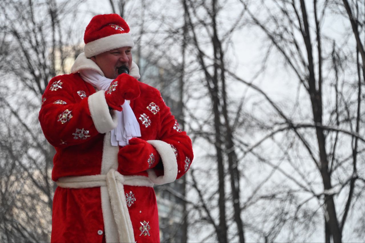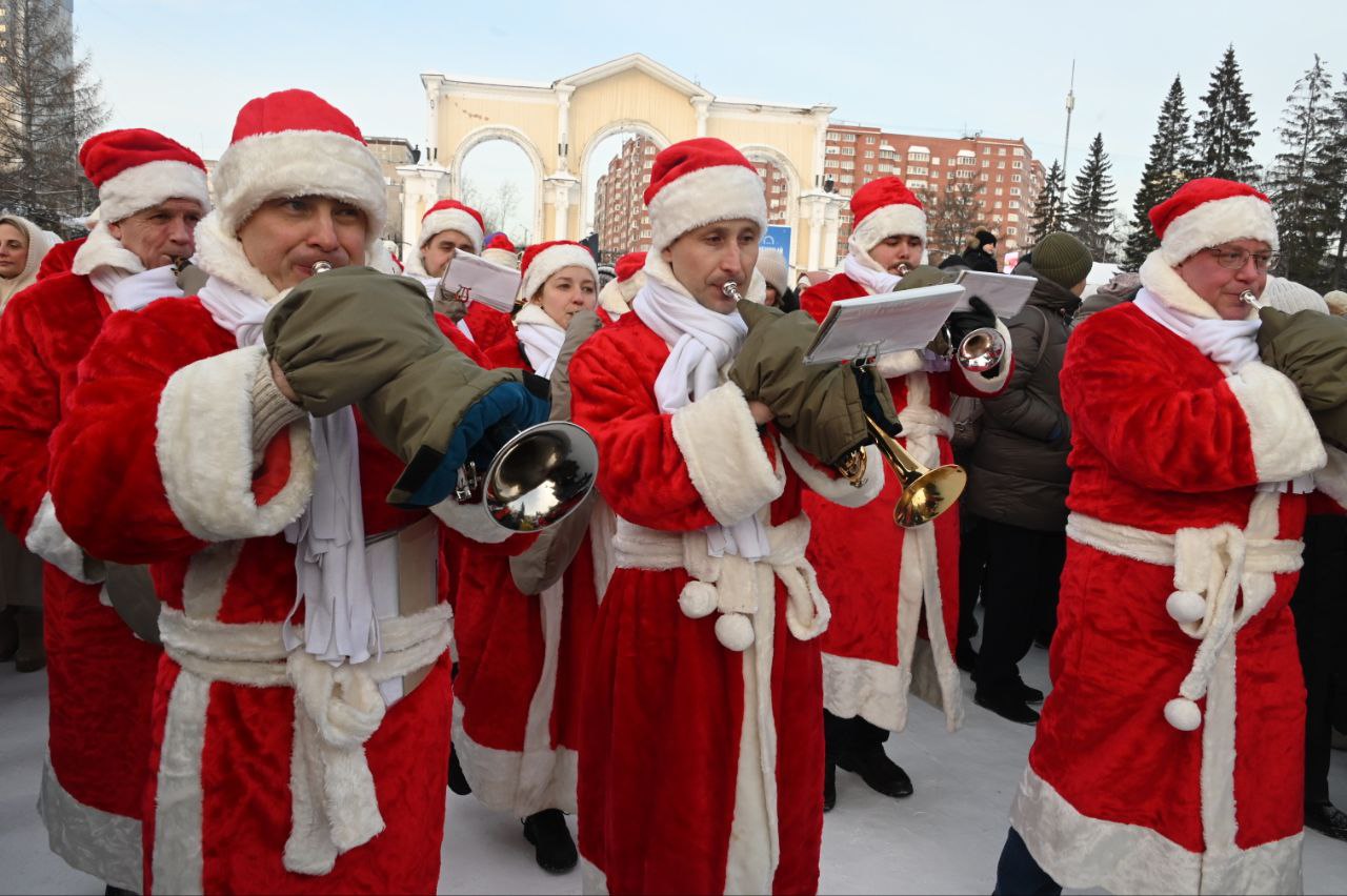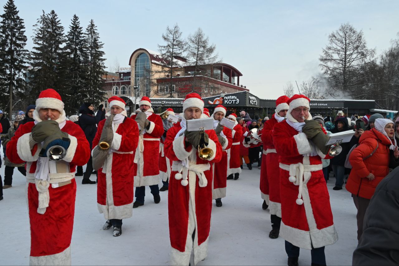 В Екатеринбурге в парке Маяковского масштабно прошел парад Дедов Морозов. Участники духового оркестра «Уралбэнд» под руководством Александра Павлова по традиции прогулялись по парку в костюмах зимних волшебников. Затем они вышли на главную сцену, чтобы исполнить знакомые всем добрые песни.