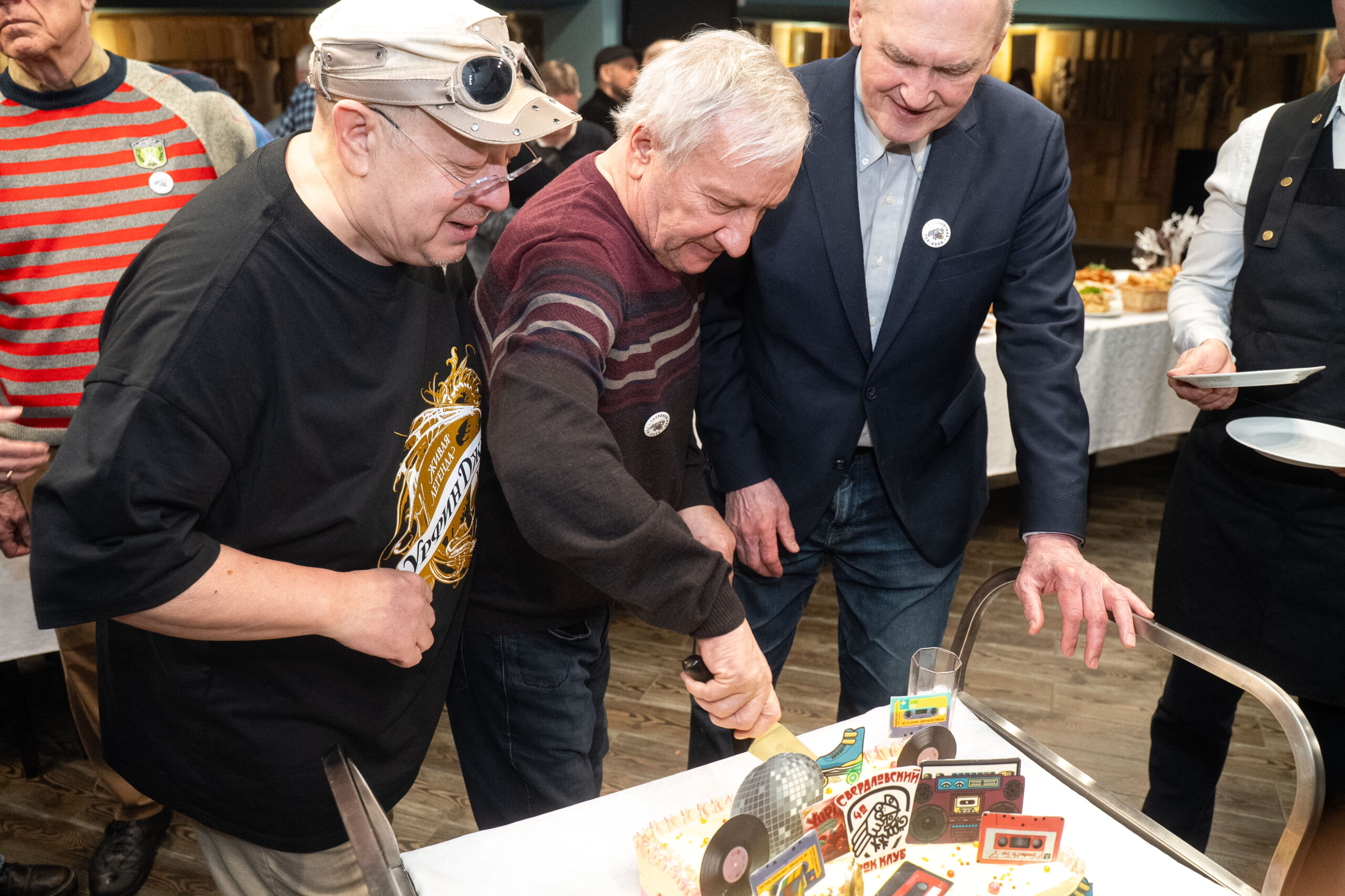 Все они после ироничного предложения Александра Пантыкина единогласно переизбрали на новый срок президента Свердловского рок-клуба Николая Грахова, послушали его «инаугурационную речь», а затем разрезали праздничный торт, посвященный большому юбилею.