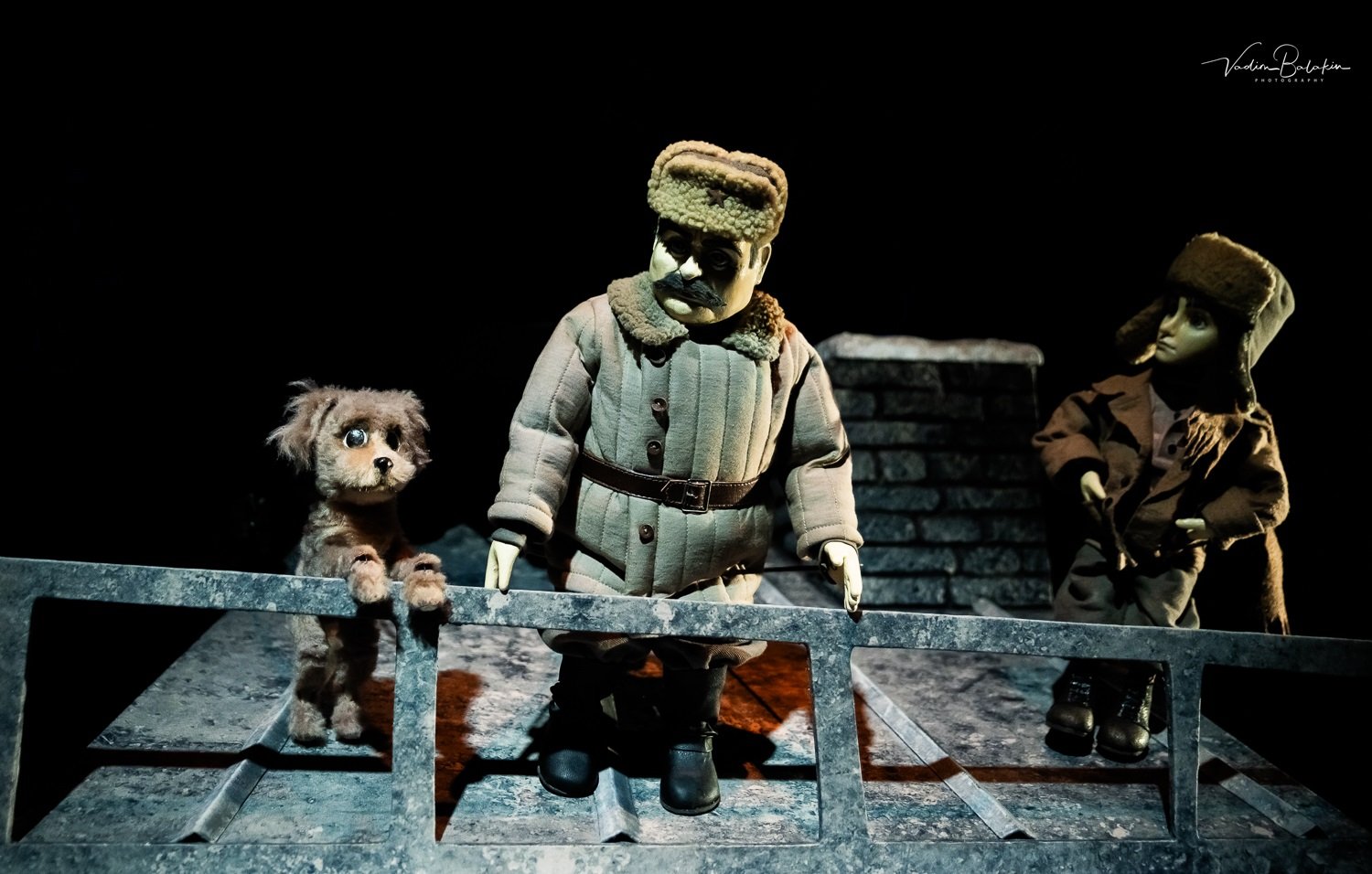 В-третьих, игра екатеринбургских актеров-кукольников, как всегда, отличается высоким уровнем ведения и озвучки куклы. Чего только стоят актерские воплощения таких героев, как товарища Христофорчикова, щенка Санчо, Вовки и его матери, дедушки-инвалида с гармошкой! Между сценами спектакля, во время перестановок, актеры читали информационные сводки о буднях войны и блокады, что очень важно для общей эрудиции ребят в рамках темы Великой Отечественной войны.