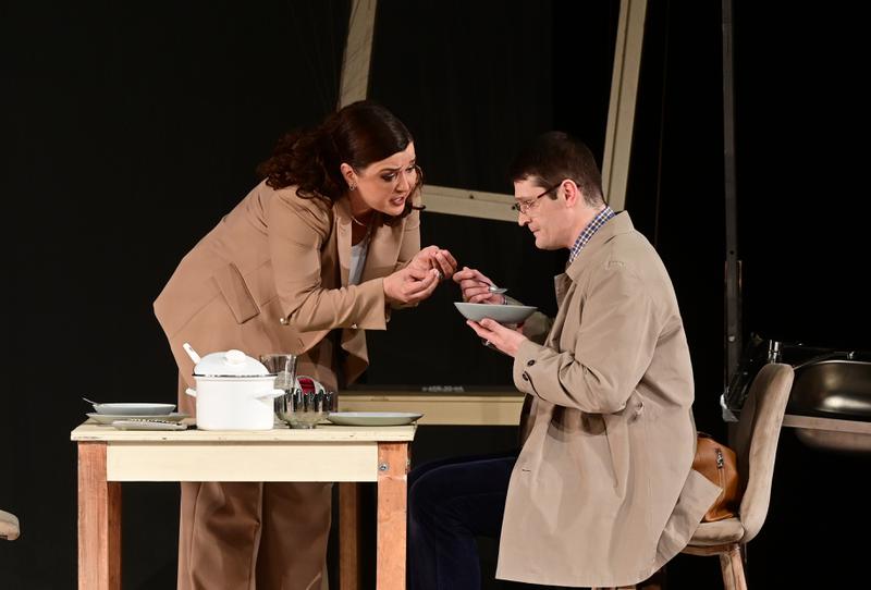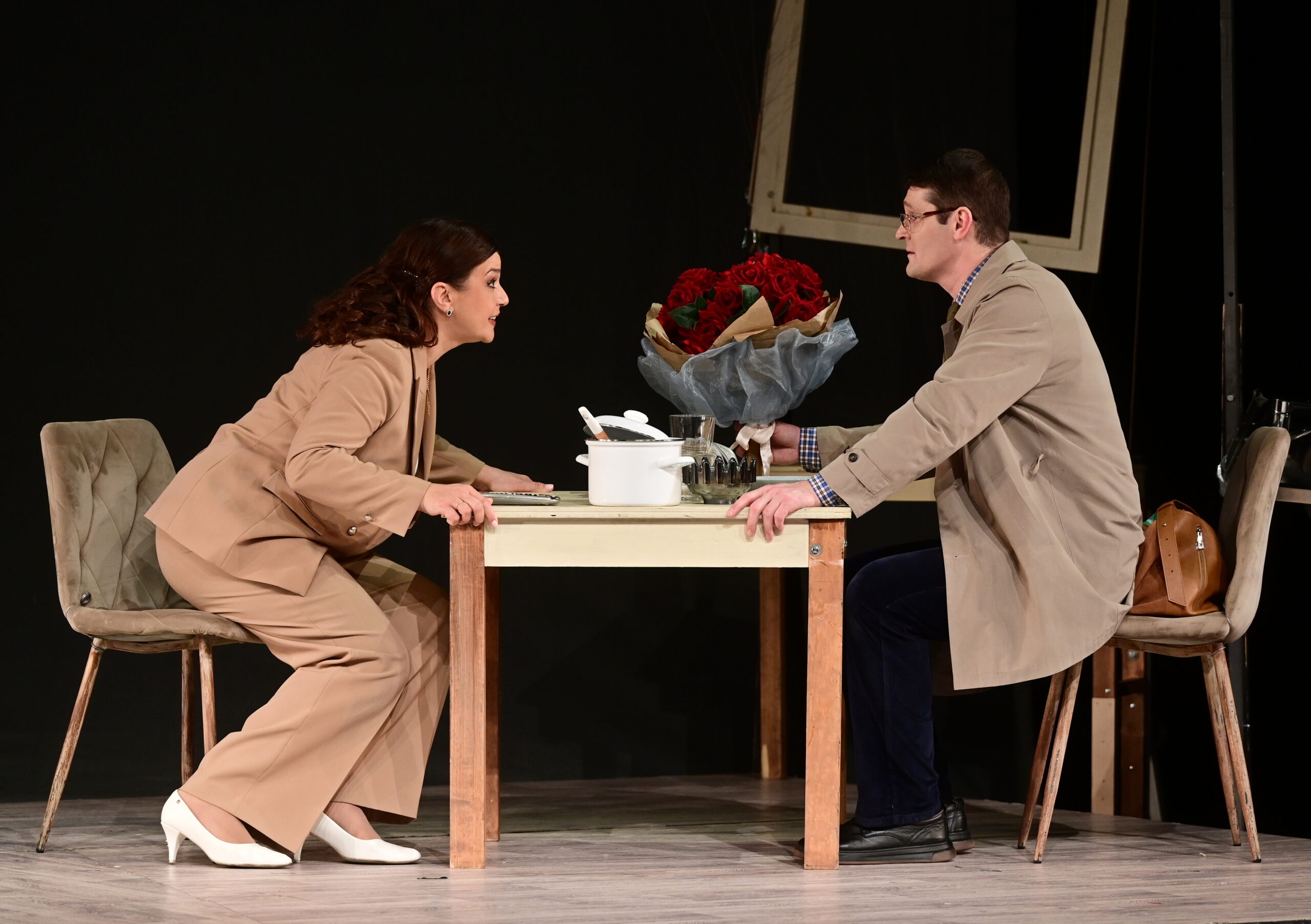 Сцена из спектакля «Букет». Жена – Вера Полякова-Макей, муж – Геннадий Гаранский. Фото: Павел Ворожцов, «Областная газета»