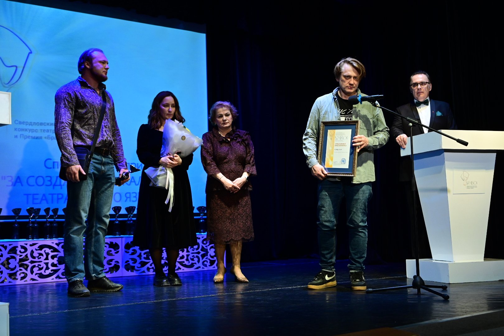 Четырехкратное «Браво!» заслужил Нижнетагильский драматический театр им. Д.Н. Мамина-Сибиряка. Так, коллектив получил награду за лучший детский спектакль – это «Конёк-Горбунок» (режиссер Игорь Булыгин) и сразу три приза за постановку «Лир» (режиссер Георгий Цнобиладзе). В частности, отмечен художник-постановщик Анвар Гумаров, а также исполнитель роли Лира Валерий Каратаев. С этим артистом была связана самая трогательная и вместе с тем самая смешная часть церемонии вручения премии. Дело в том, что Валерий Каратаев пока восстанавливается после операции, поэтому лично на мероприятии быть не смог. Ведущий Илья Скворцов предложил позвонить ново­испеченному лауреату, чтобы поздравить его и адресовать аплодисменты всего зала. Вот только артист настолько этого не ожидал, что даже не поверил в происходящее, пока не услышал голос родного худрука Игоря Булыгина.