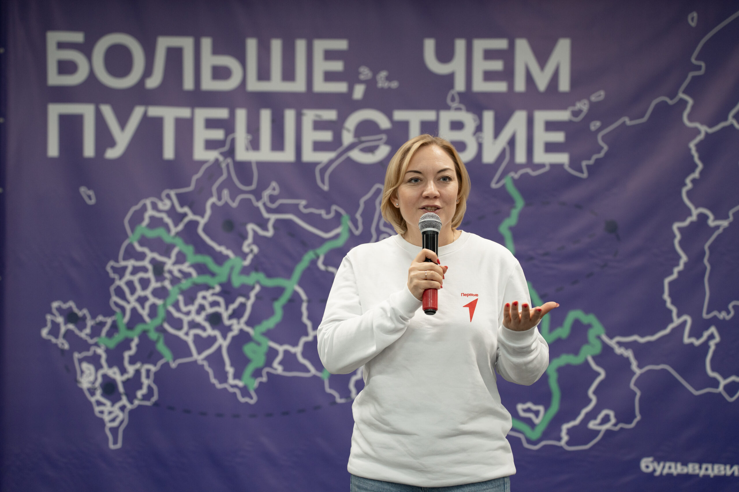 Во время церемонии открытия слета участников приветствовала председатель Совета регионального отделения «Движения Первых» Свердловской области Ирина Грибан.