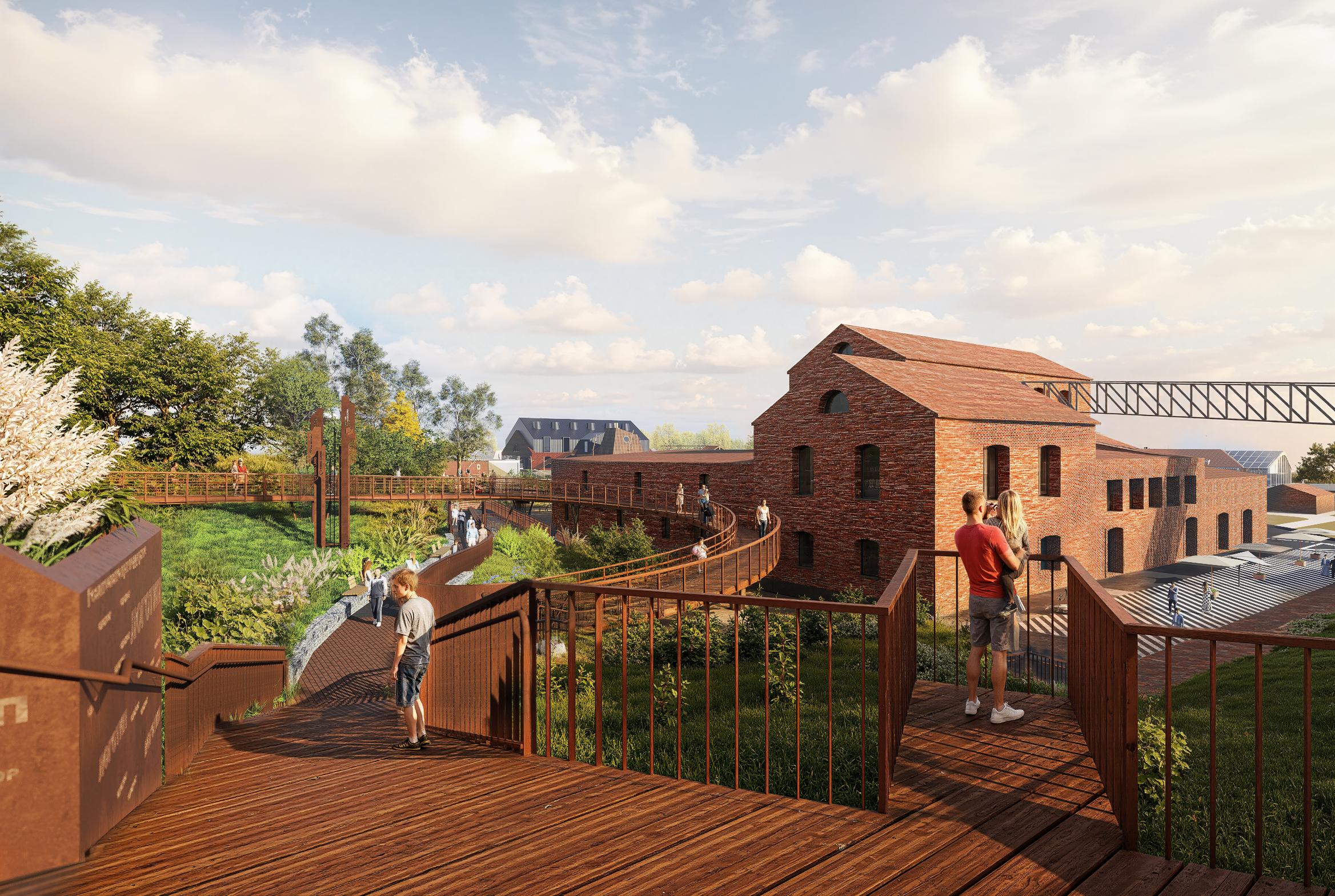 Проект инклюзивного входа разработали архитекторы екатеринбургского бюро FISH (создатели проекта URALRUIN) совместно с командой креативного кластера «На Заводе». По задумке авторов, лестница-пандус не только облегчит вход на Завод, но и станет новой точкой притяжения малого города – с нее будут открываться виды на исторический центр города и цеха Завода.