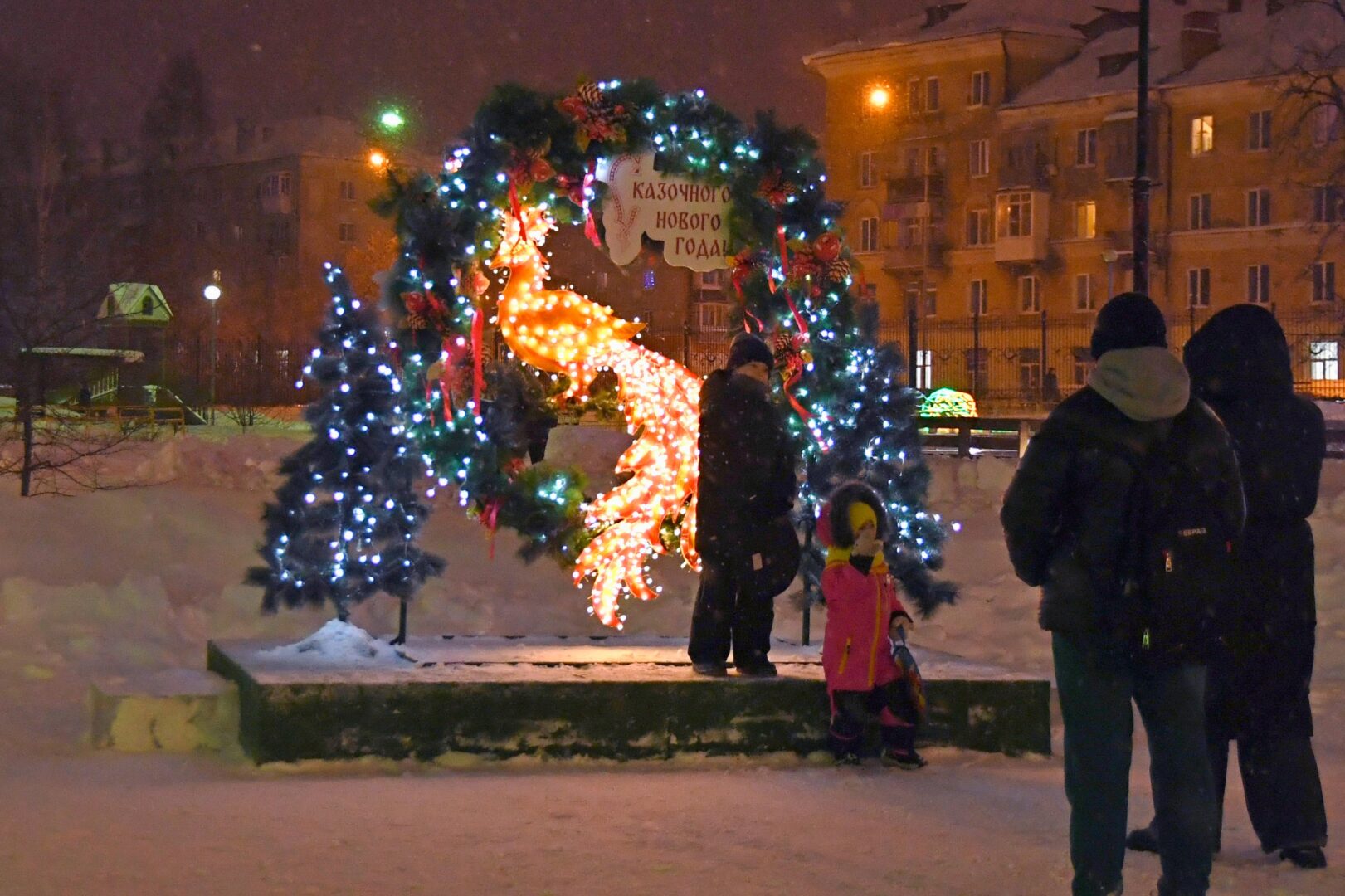 Особенностью ледового городка стали три фотозоны. Композиция «Жар-Птица» — символ чуда и исполнения желаний. Фотозона «Защитники Отечества» представляет собой масштабную историческую композицию с объемными фигурами воинов разных эпох на фоне зимнего леса и напоминает о связи поколений. Фотозона «Памятные даты» посвящена 80-летию Великой Победы и предстоящему 90-летию Уралвагонзавода.