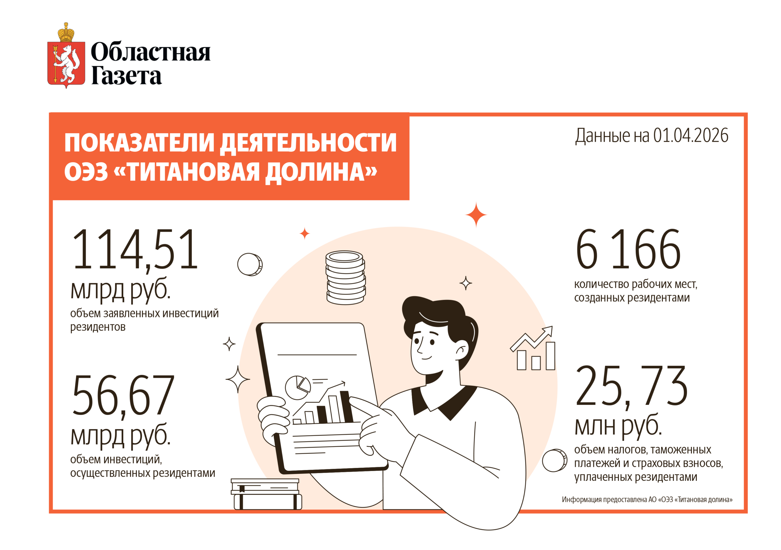 «Продолжаем расширять возможности „Титановой долины“. Здесь появятся современные металлургические производства с общим объемом инвестиций потенциальных резидентов около 28 млрд рублей и более тысячи новых рабочих мест», — отметил глава региона в своих соцсетях.