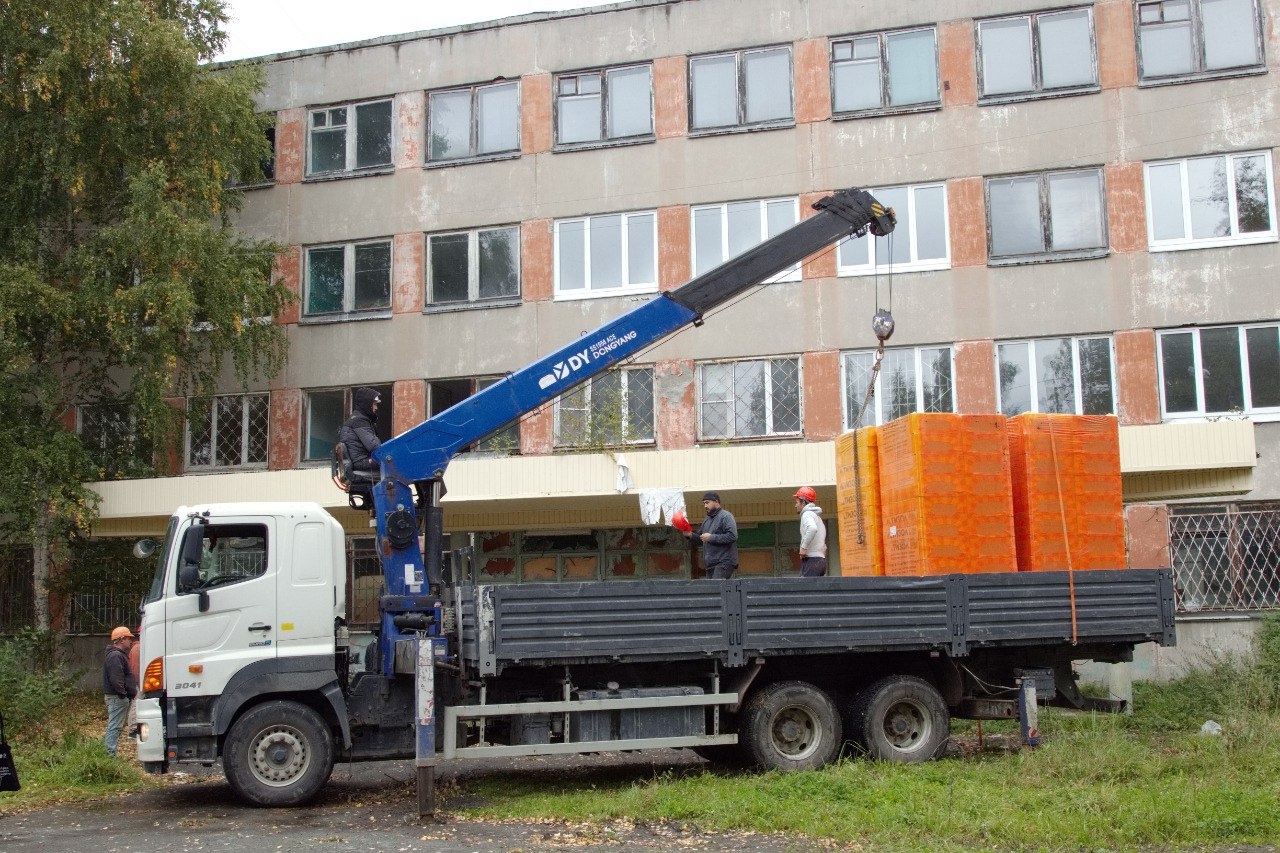 Здание ожидает капитальный ремонт: предстоит замена 1 573 квадратных метров кровли, обновление 270 окон и витражей. Материалы, необходимые для начала первых работ, уже доставлены на строительную площадку.