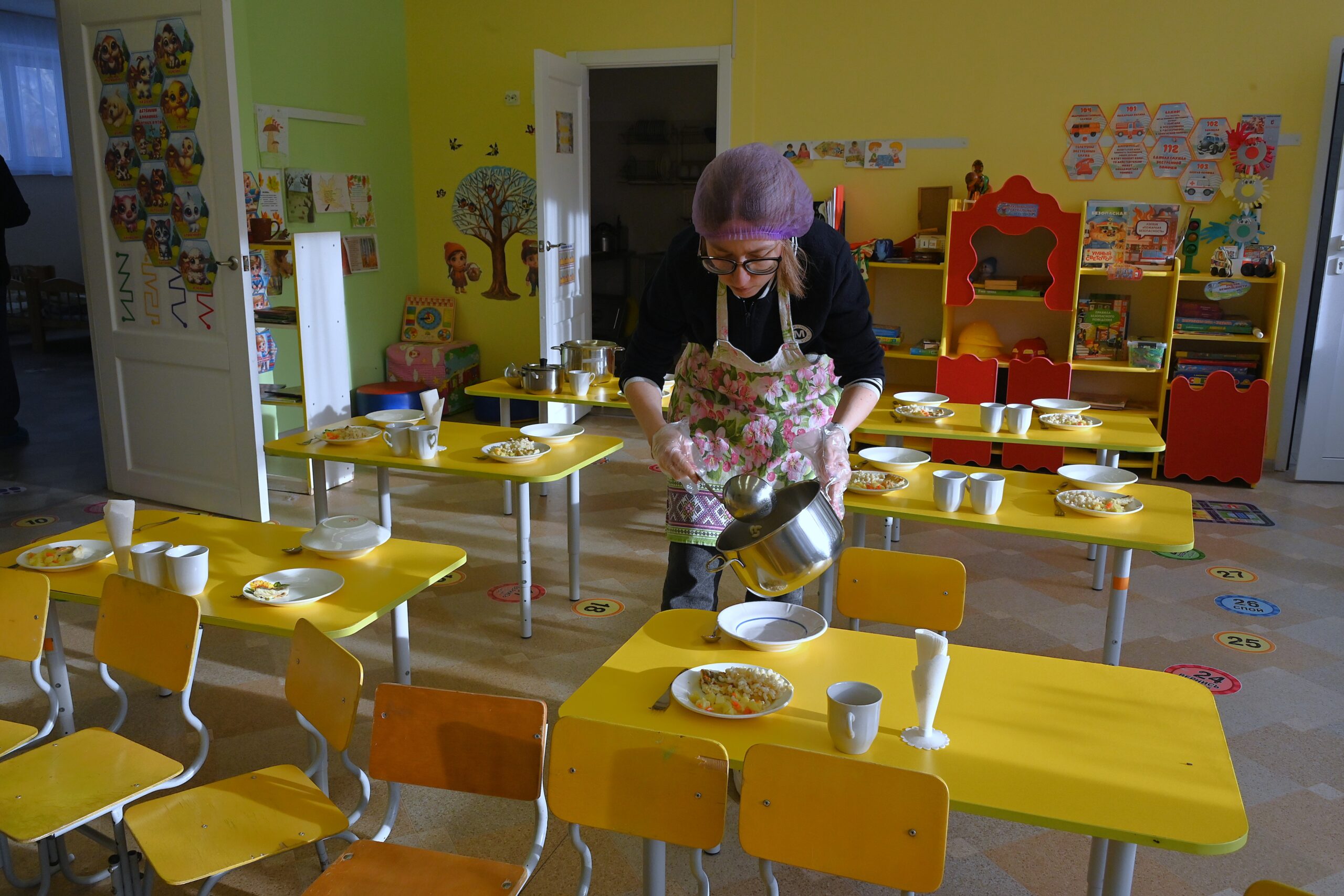 В садике у ясельной группе уже тихий час. Другие ребятки недавно вернулись с прогулки, обедают. Порции на столиках вполне приличные, если попросят добавки — не откажут.