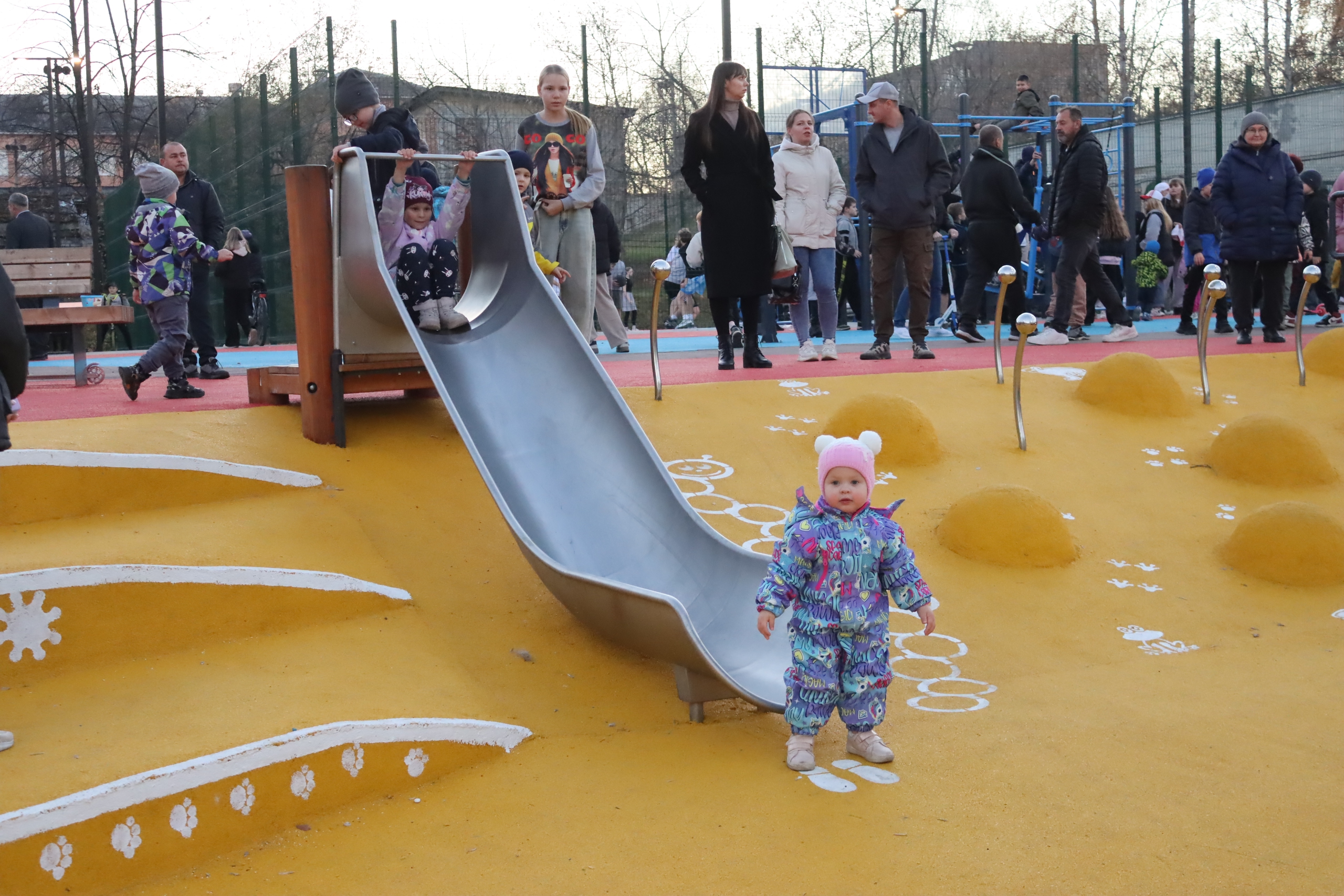 Сейчас на месте старой советской площадки появилась зона для воркаута и уличные тренажеры, беговая и велосипедная дорожки, игровая зона для детей, горки, тактильная зона, уличные бизиборды, закрытая площадка для баскетбола и волейбола с трибунами.