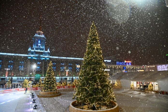 Тем не менее удалось провести большой объем подготовительных работ: на площадь привезли более 1,4 тыс. куб. метров песка и отсева, чтобы заменить снежный слой, который требуется по технологии. Параллельно велась работа над декором и техническим оснащением. Установили теплый павильон, куда привезли более 800 пар фигурных и хоккейных коньков, фудкорты и медиарубку, гараж для ледозаливочных «Умок».