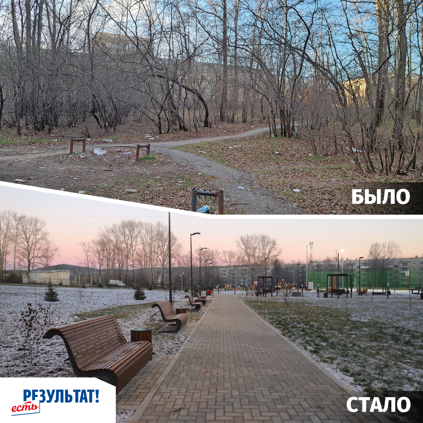 На месте пустыря обустроены дорожки и тротуары. Для детей: игровые площадки с горками и качелями. Для спорта: баскетбольная площадка, зона воркаута, столы для настольного тенниса и шахмат. Высажены деревья. Установлены освещение и камеры видеонаблюдения.