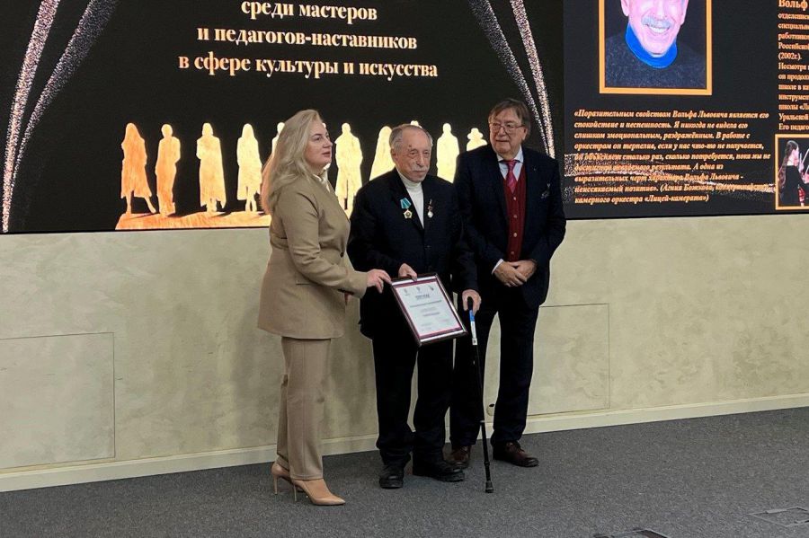 В номинации «Музыкальное искусство» победителем стал заведующий отделением струнных инструментов Уральской специальной музыкальной школы, заслуженный артист Российской Федерации, почетный гражданин Свердловской области Вольф Усминский. Его вклад в развитие музыкального образования и воспитание молодых исполнителей высоко оценили на федеральном уровне.