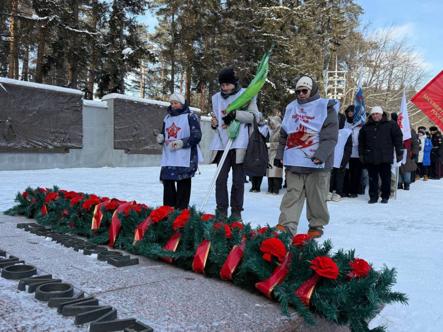На Широкореченском военно-мемориальном комплексе около 200 представителей ветеранских организаций, волонтерского и молодежного движения региона почтили минутой молчания память павших во время блокады ленинградцев и возложили цветы к Вечному огню.