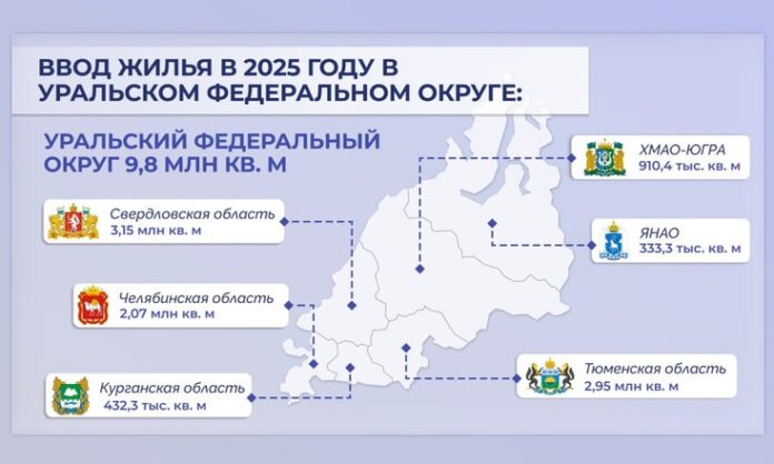 В УрФО в 2025 году ввели более 9,8 млн квадратных метров жилья