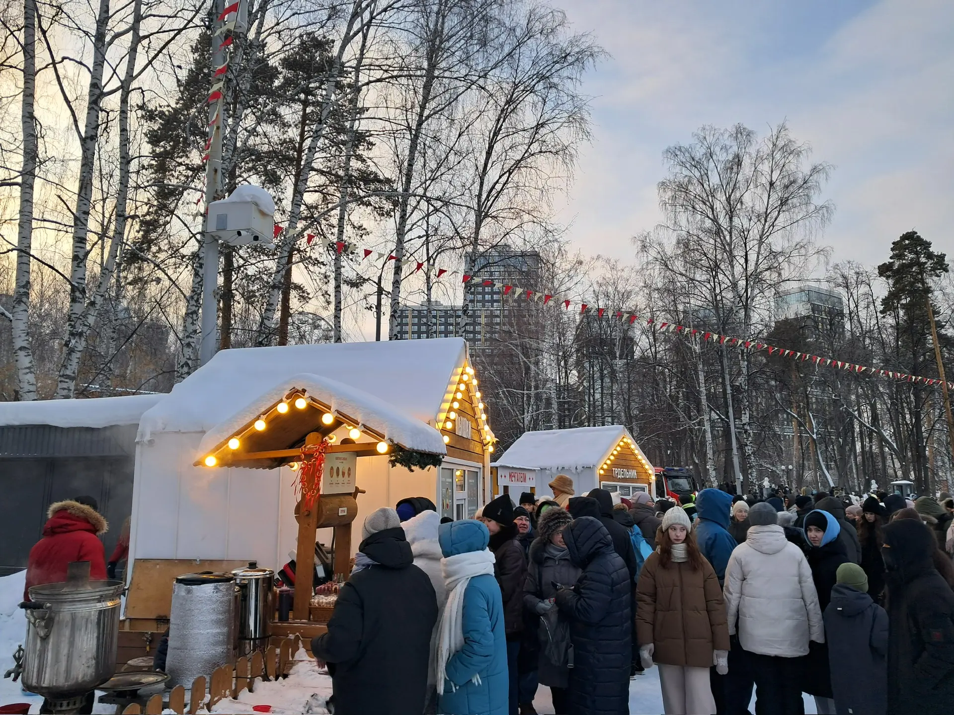 То, что Масленица по-прежнему является одним из самых долгожданных праздников, проиллюстрировали внушительные очереди на входе в парк. Спустя 20 минут мы попали внутрь, где нас встречали озорные скоморохи, яркие флажки и кони из соломы. Рядом увидели еще одну очередь, на этот раз к ларьку с бесплатными блинами от спонсоров торжества.