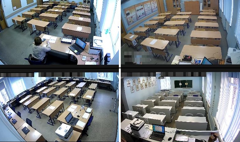 Система работает на базе защищенных каналов связи и включает IP-камеры, коммутатор доступа, антивандальный шкаф и источник бесперебойного питания. Цифровые камеры охватывают необходимый угол обзора: в кадр попадают участники ЕГЭ, место печати, сканирования и раскладки экзаменационных материалов, при этом персональные данные участников, содержание заполненных бланков регистрации и ответы остаются в тайне.
