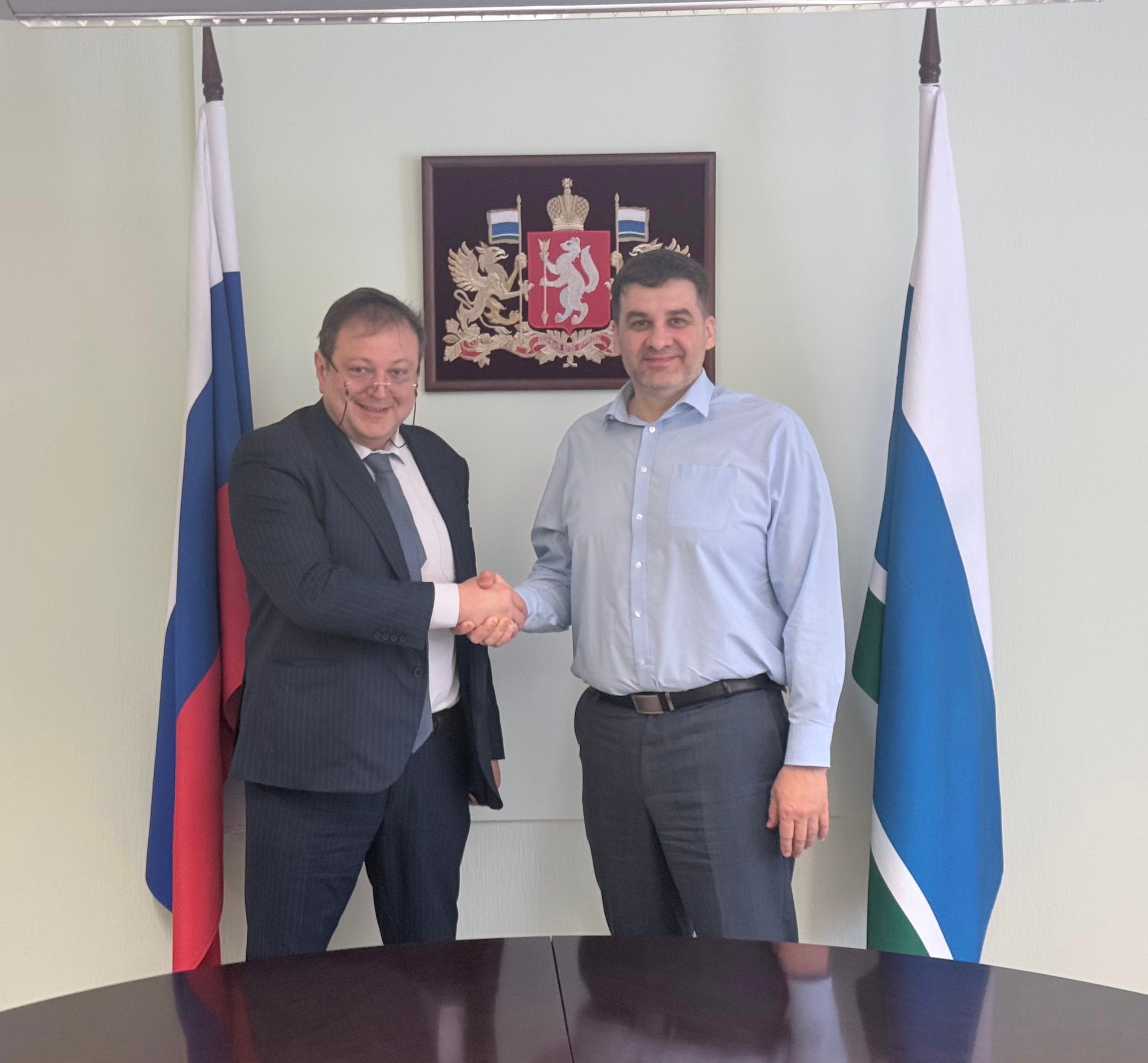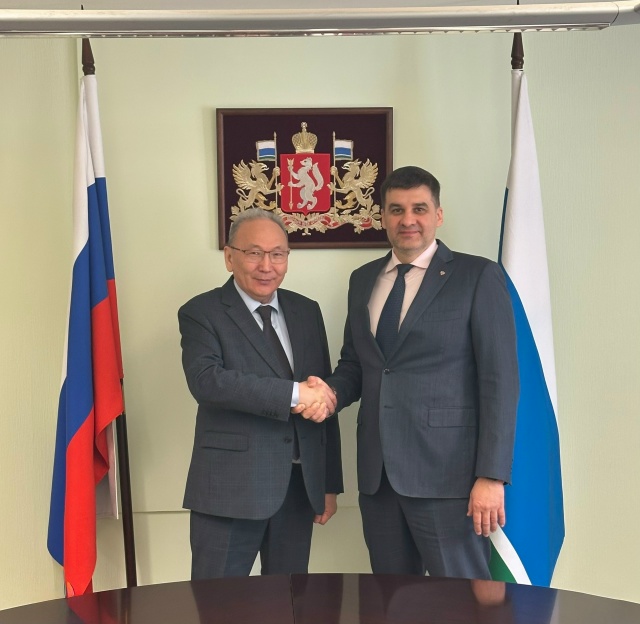 В Представительстве губернатора Свердловской области в Москве состоялась рабочая встреча постоянного представителя губернатора Свердловской области при Президенте РФ Андрея Цыкуна с постпредом Республики Саха (Якутия) при Президенте РФ первым заместителем председателя Правительства Республики Саха (Якутия) Андреем Федотовым.