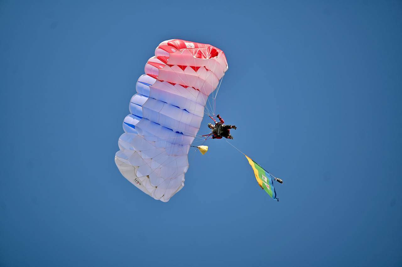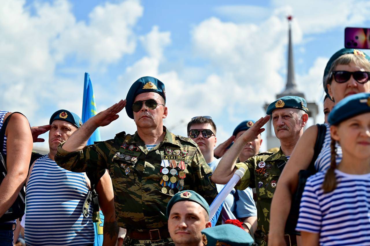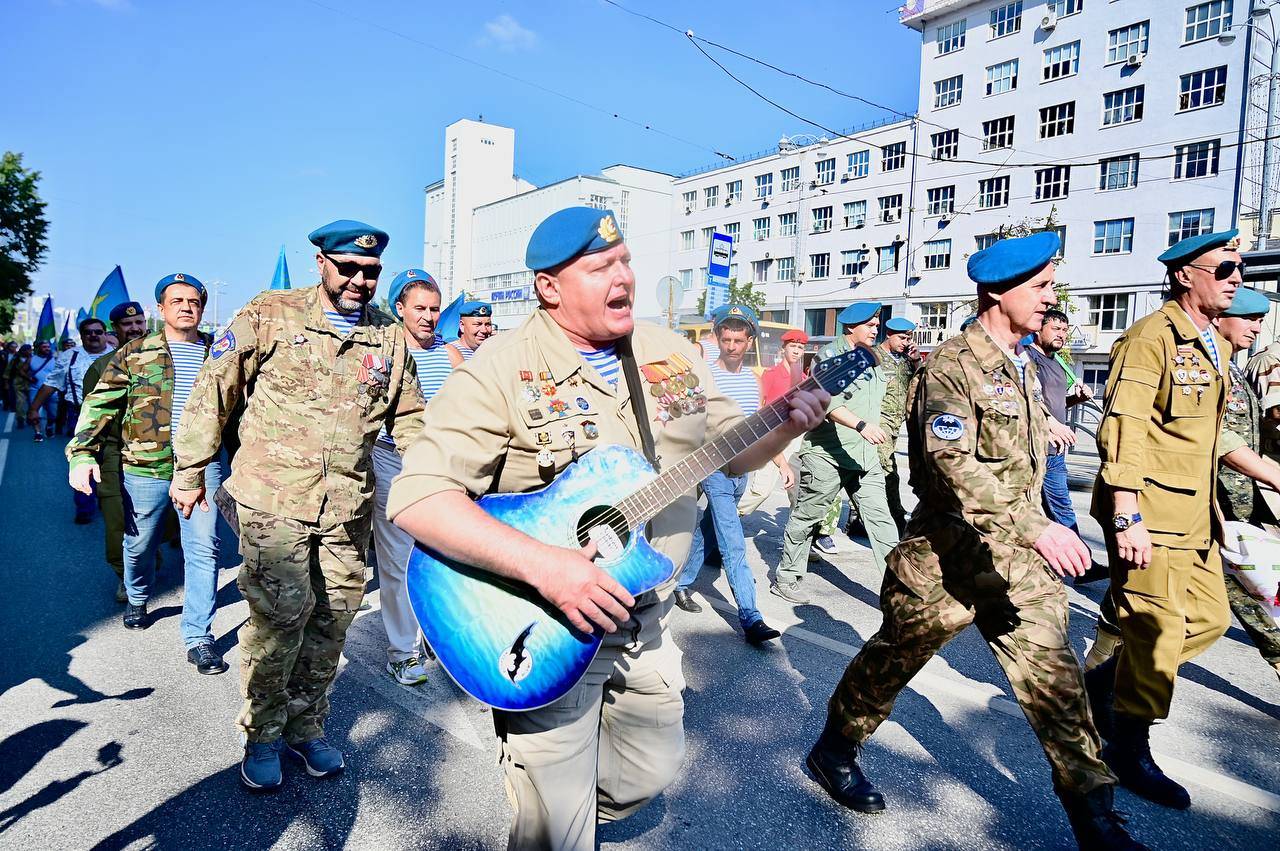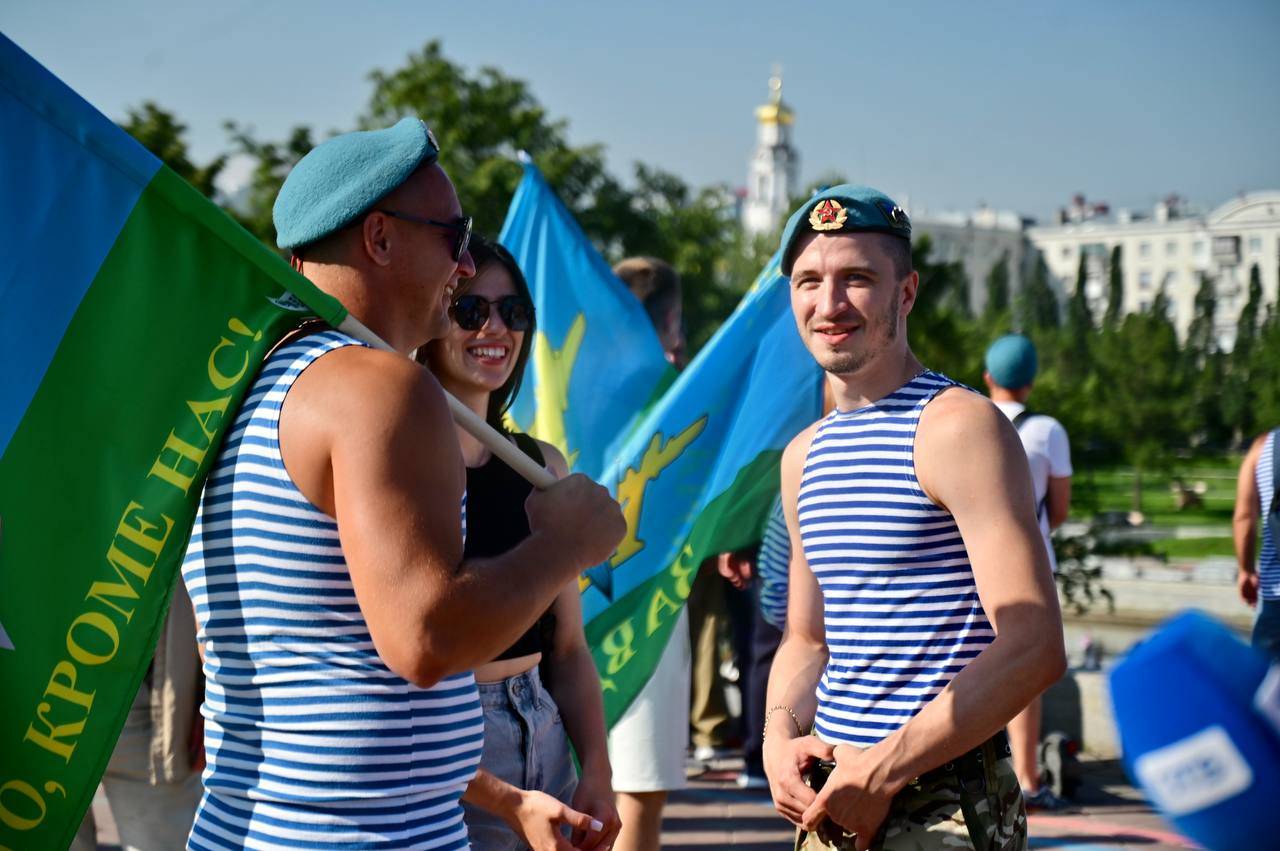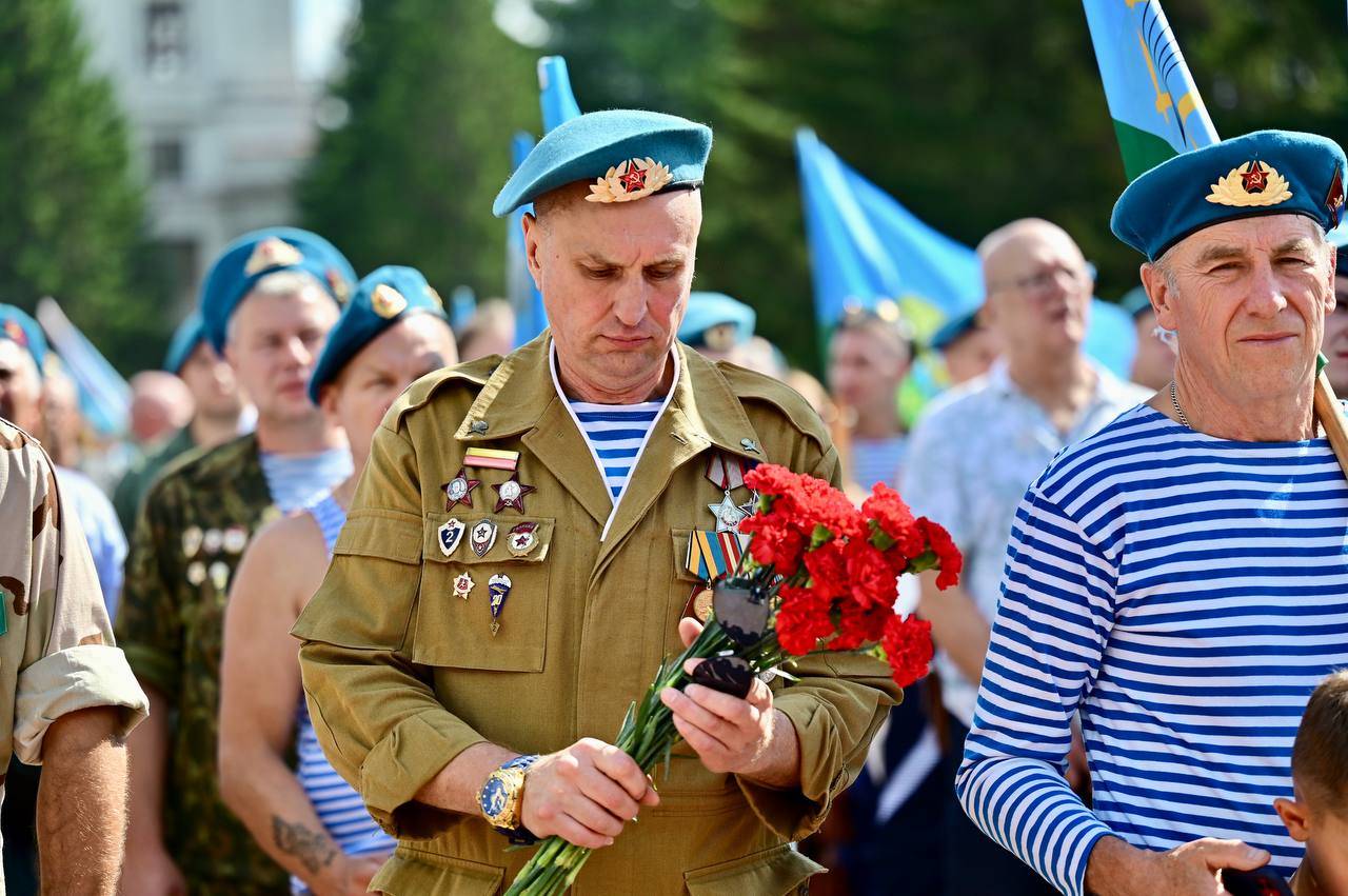 В Екатеринбурге начали праздновать День ВДВ. Празднование началось с показательных прыжков спортсменов-парашютистов в Историческом сквере, а затем десантники строем прошли по проспекту Ленина к мемориалу «Черный тюльпан» — там состоялся памятный митинг с возложением цветов.