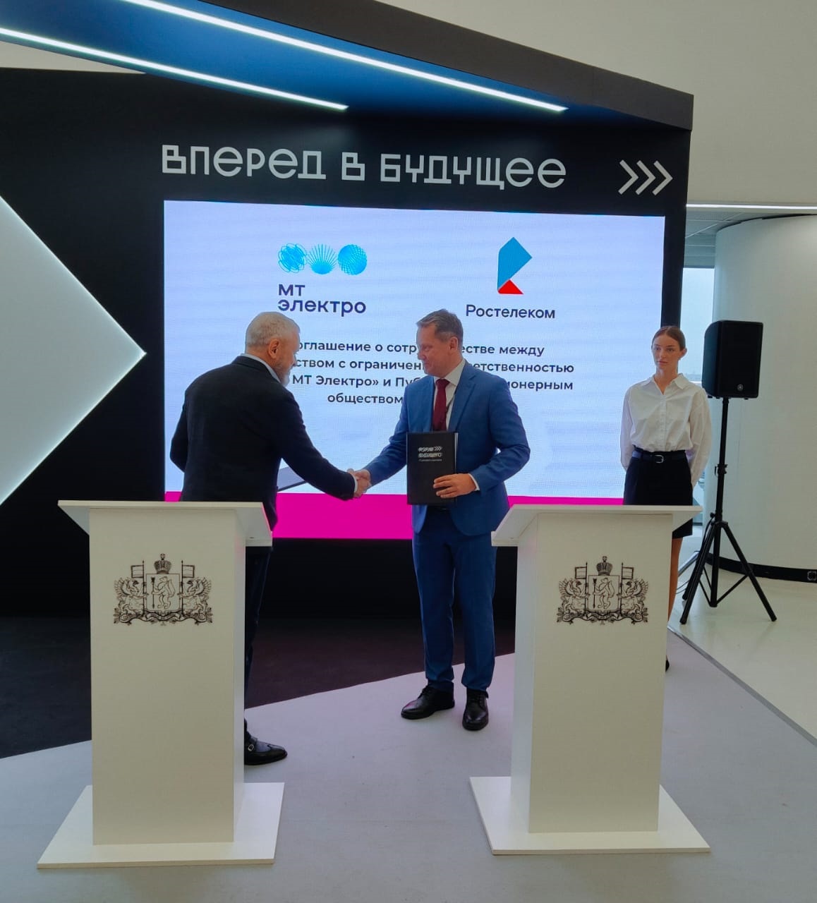 На «Форуме будущего» компании «Ростелеком» и «СТК МТ Электро» заключили соглашение о сотрудничестве. Цель альянса — совместное внедрение комплексных решений по цифровизации и модернизации городского освещения с помощью архитектурной подсветки, декоративной, ландшафтной и праздничной иллюминации. Документ подписали директор «СТК МТ Электро» Борис Белых и директор Екатеринбургского филиала «Ростелекома» Дмитрий Лукошков.