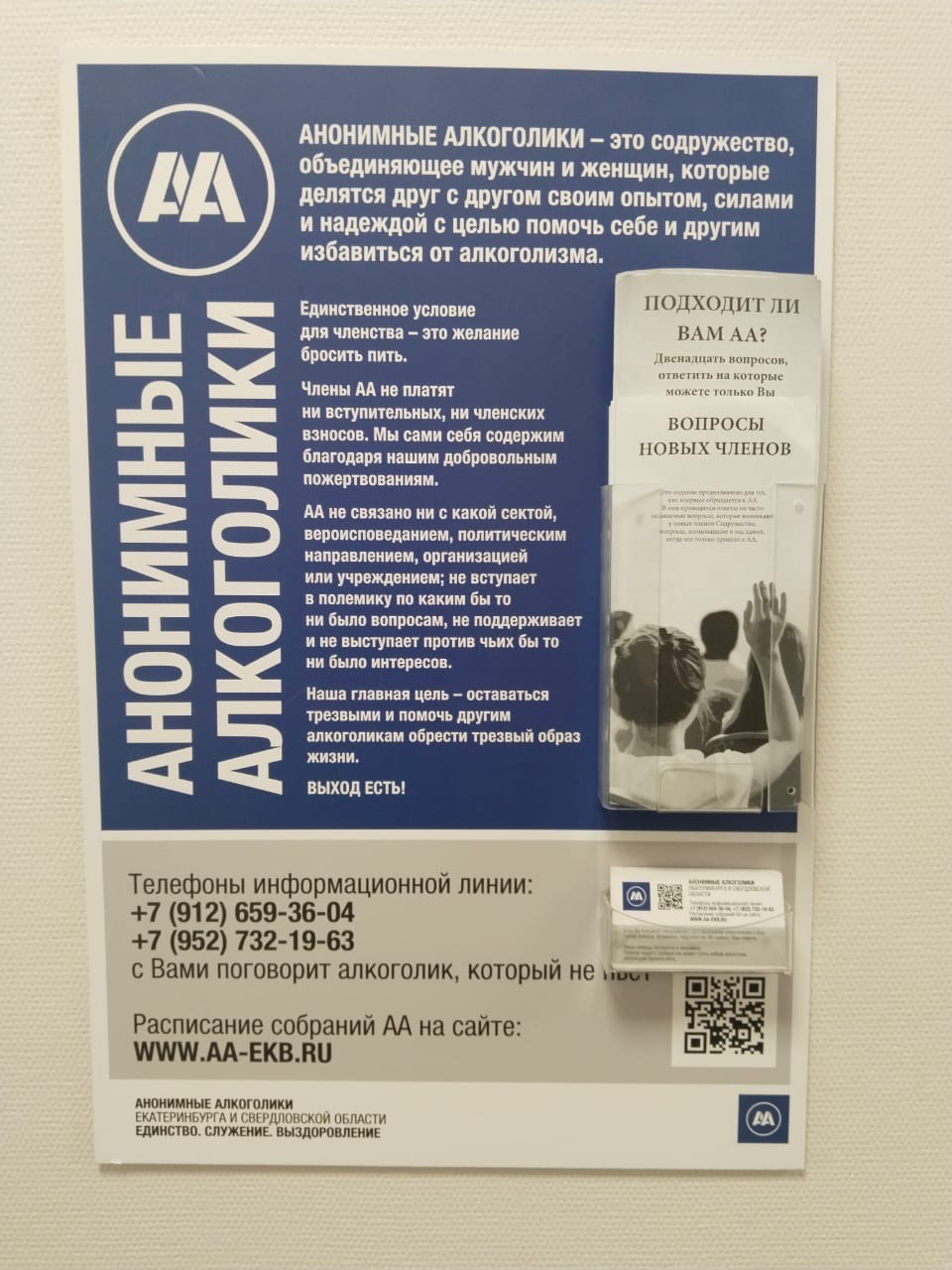 Содружество Анонимных Алкоголиков активно продолжает распространять идеи выздоровления от алкогольной зависимости в Екатеринбурге.