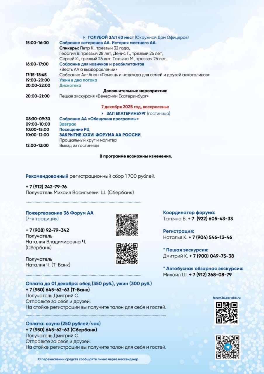 Подробная программа, условия участия и размещения доступны на сайте: forum36.aa-ekb.ru