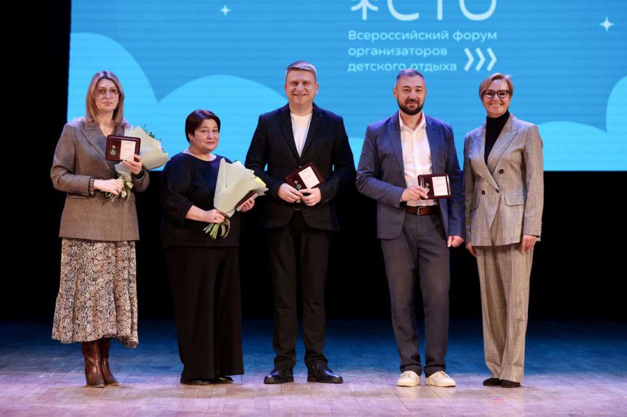 На торжественном открытии форума и. о. министра образования Свердловской области Светлана Тренихина вручила пяти лучшим специалистам региона нагрудный знак «За верность детству». Один из награжденных — директор оздоровительного комплекса «Восход» из Краснотурьинска Игорь Чувашов.