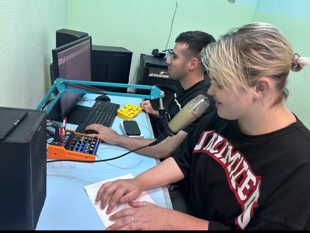 В нашей студийной команде нет жесткого деления на должности: диктор, оператор, корреспондент, хотя мы понимаем, что у кого получается лучше. Несколько человек уже отлично работают с микрофоном в качестве дикторов, кто-то легко подбирает материал, сам пишет стихи и песни. У кого-то всегда много идей. Есть у нас в этом учебном году и новички, которые постепенно приобретают уверенность. А наш звукорежиссер так замечательно владеет техникой, что мы спокойны за качество вещания в эфире.