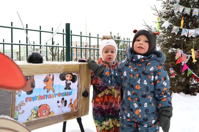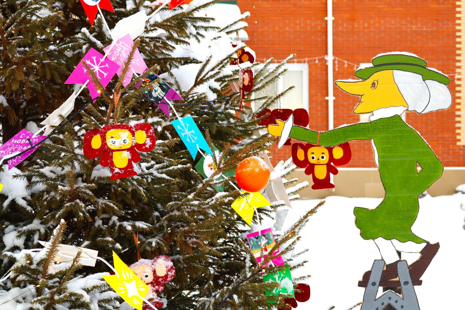 Ребята и родители украсили ели на территории детского сада, которые были посажены во время строительства ДОУ в 2015 году. Ёлки украсили ретро- и самодельные игрушки по мотивам новогодних мультфильмов легендарной студии «Союзмультфильм». Ребят радуют Чебурашка, Шапокляк, дядя Федор, кот Матроскин, Умка, Волк, Заяц и многие другие любимые персонажи.