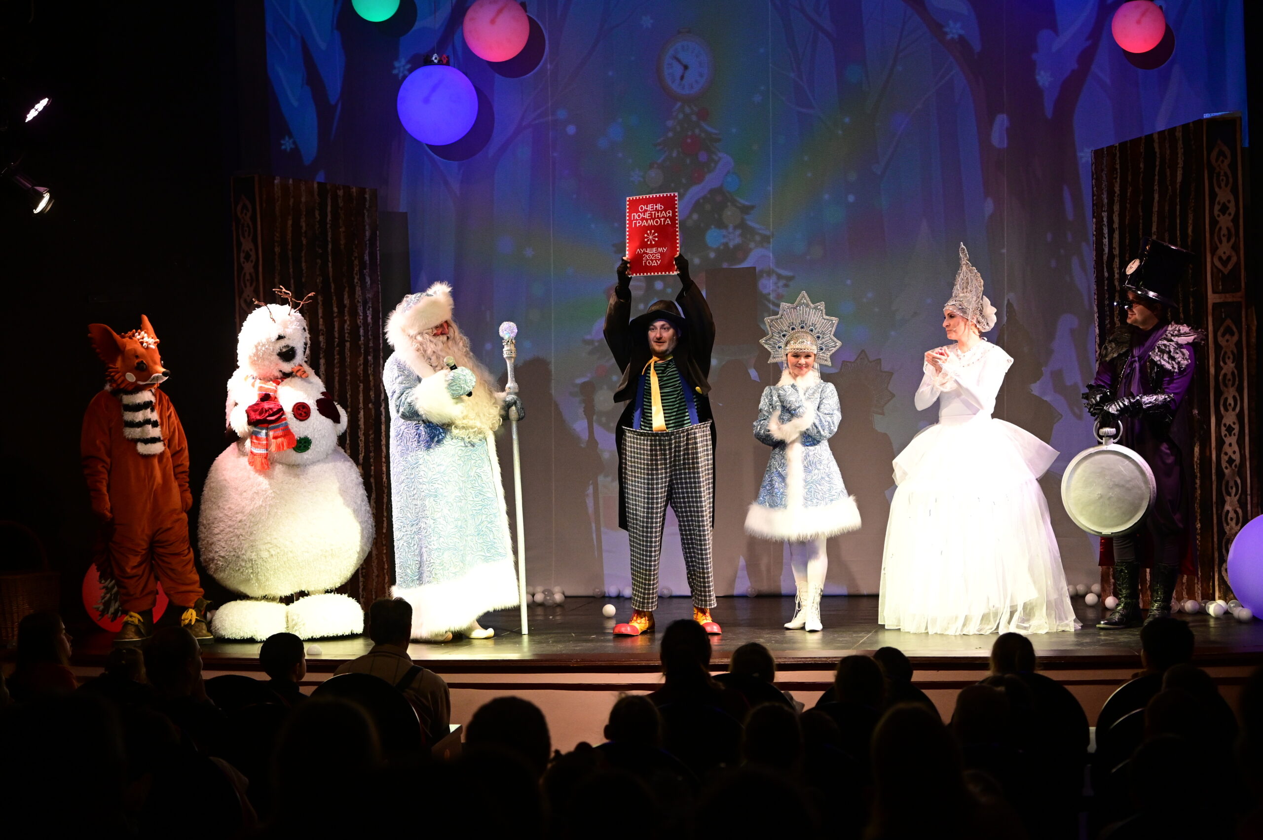 Гаснет свет, представление начинается. Спектакль поставила главный режиссер театра Наталья Молоканова. По замыслу авторов, старый (уходящий) 2025 год не желает покидать нас. Вступив в сговор с хитрым Часовщиком, он спрятал Деда Мороза и Снегурочку в Старых часах. И именно юные зрители должны спасти их.
