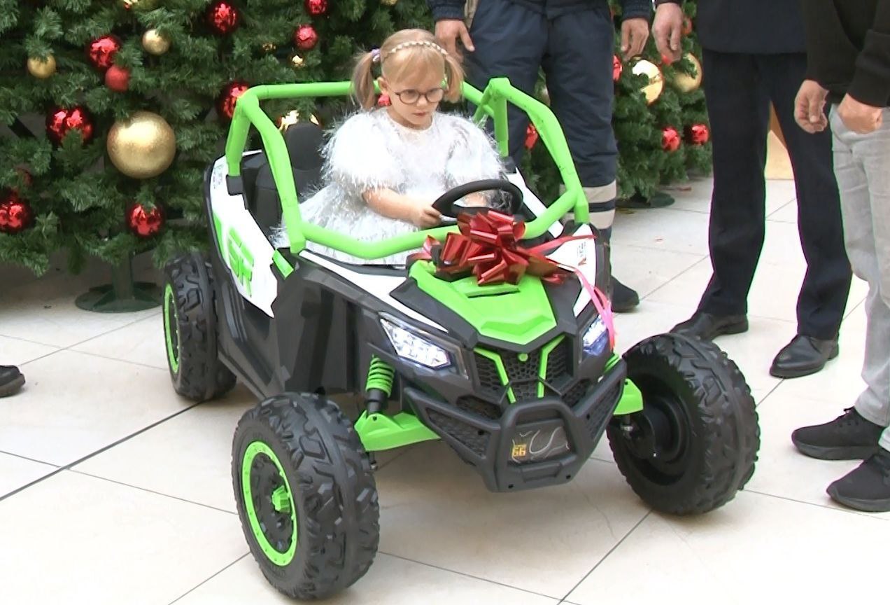 Торжественное вручение электромобиля состоялось у новогодней ёлки в одном из торговых центров Екатеринбурга. Подарок по поручению главы свердловского гарнизона полиции генерал-лейтенанта Александра Мешкова вручили начальник управления по работе с личным составом Сергей Волощук и инспекторы специализированного батальона Госавтоинспекции.