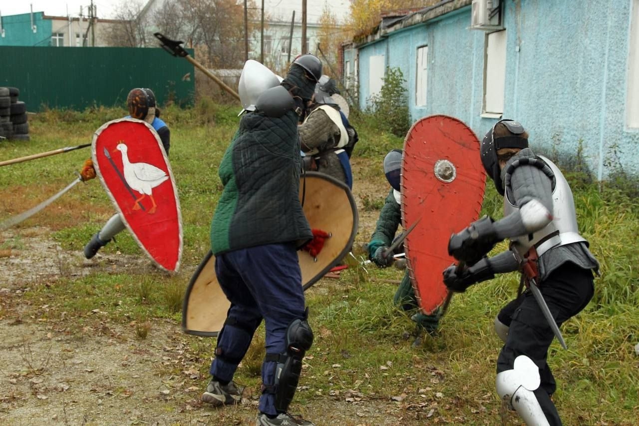 На тренировках участников, в частности, обучают по двум основным направлениям, одно из них – фехтование. Для новичков в коллекции есть мягкие мечи. Но руководитель клуба со смехом отмечает, что такое обучение менее эффективно: получать удары ими не больно, поэтому «ребята их не боятся и спокойно бьют друг друга». Также в клубе регулярно проходят занятия по стрельбе из лука.